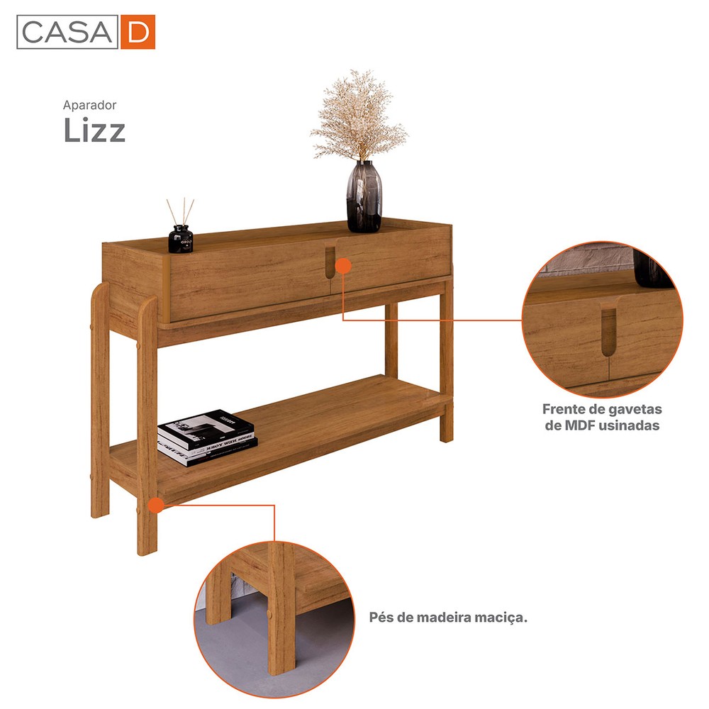 O(a) Aparador Lizz 2 Gavetas Cedro - Casa D é produzido em MDF e MDP na escala de brilho Semi-Fosco, e possui um grau de dificuldade de montagem: Médio.