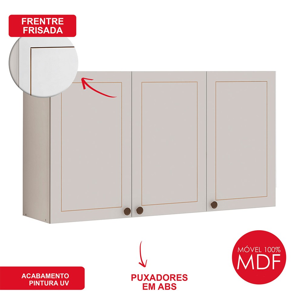 Armário Aéreo Cozinha 120 Cm Conecta Frizz 3 Portas Branco - Geniaflex