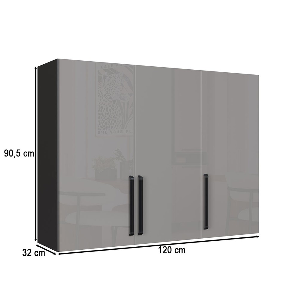 Armário Aéreo Cozinha 120 Cm Diamante 3 Portas Chumbo/Titanio - Indékes