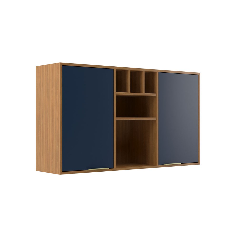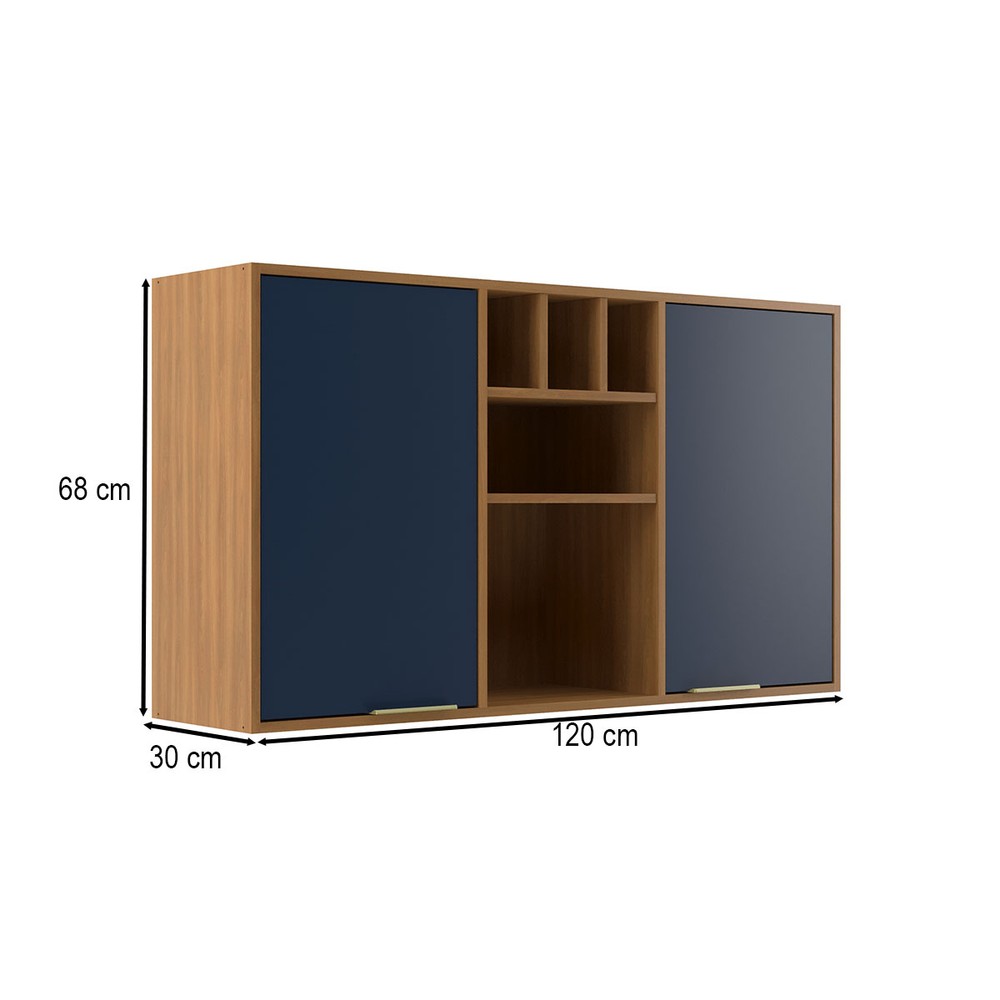 Armário Aéreo Cozinha 120 Cm Domus 2 Portas Nogal/Royal - Hecol Móveis