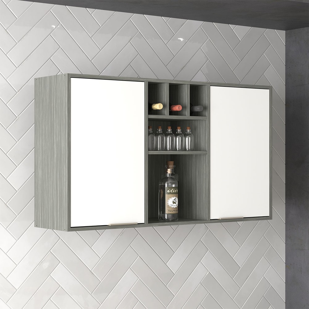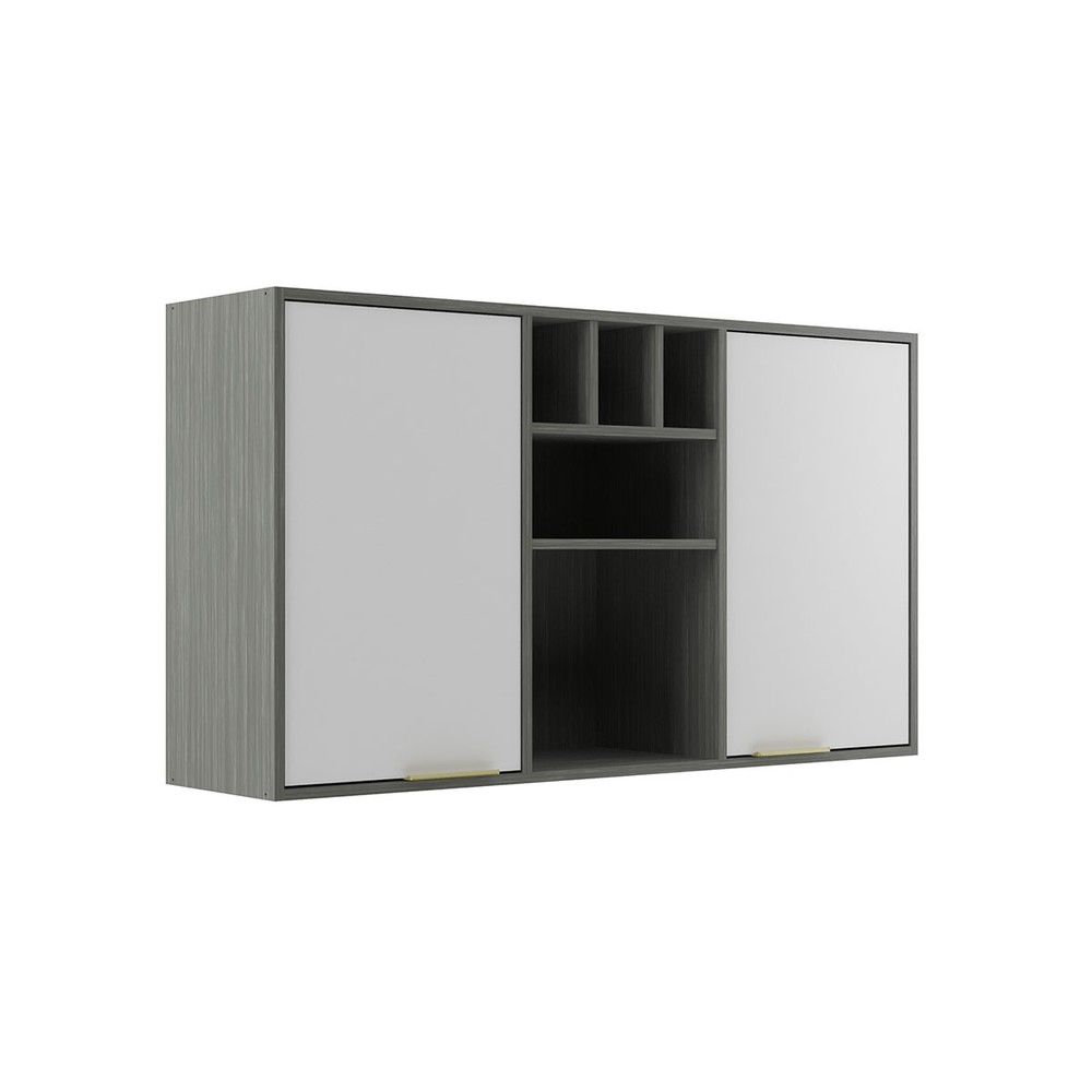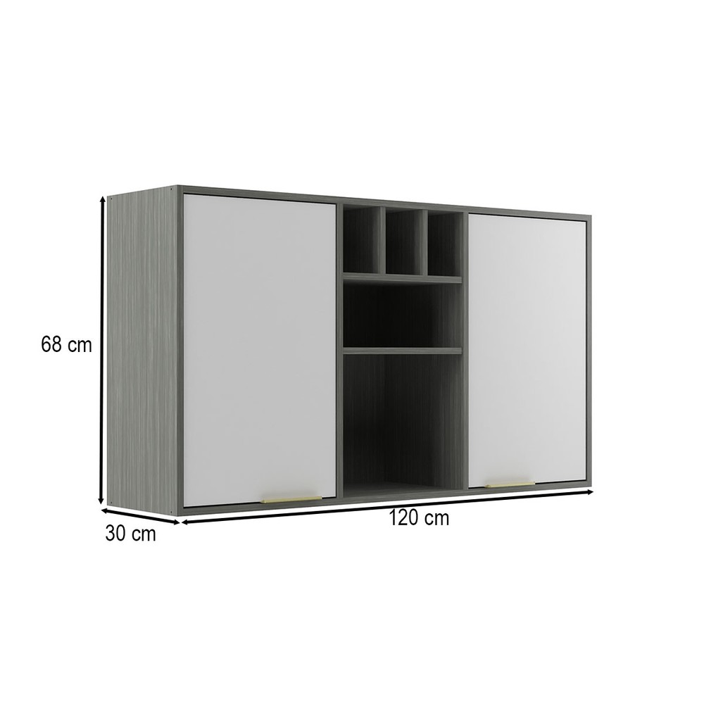 Armário Aéreo Cozinha 120 Cm Domus 2 Portas Silver/Branco - Hecol Móveis