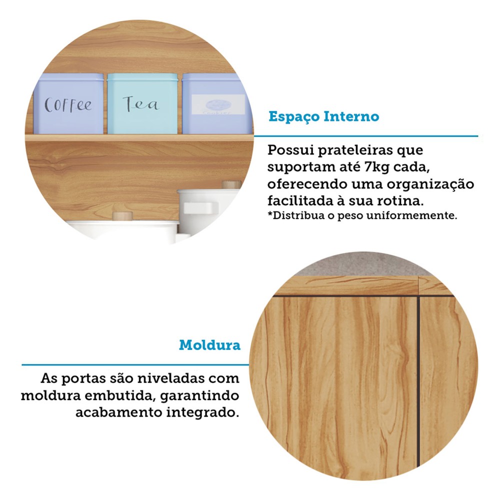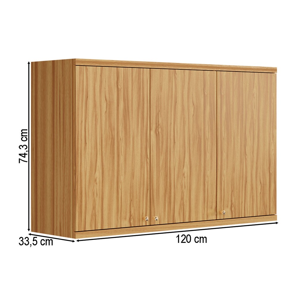 Armário Aéreo Cozinha 120 Cm Sauvignon 3 Portas 100% Mdf 11032 Amêndoa - Rio Doce