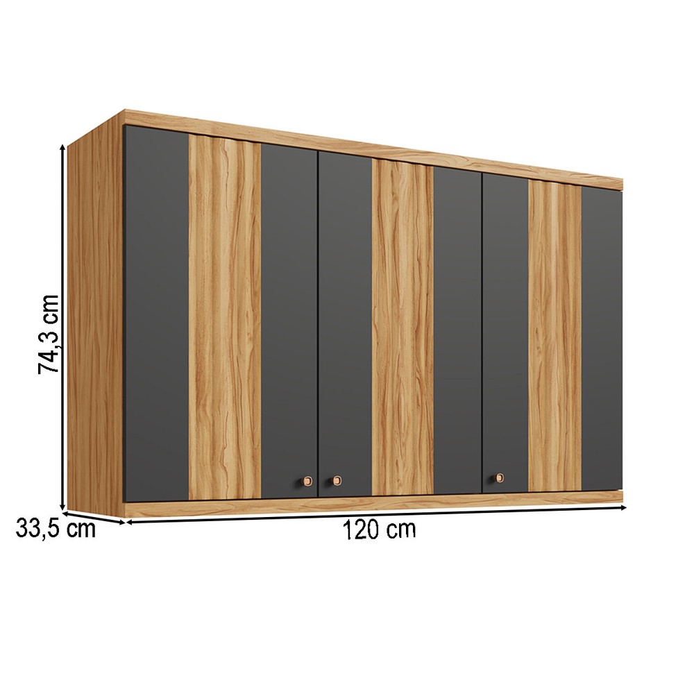 Armário Aéreo Cozinha 120 Cm Sauvignon 3 Portas 100% Mdf Amêndoa/Chumbo - Rio Doce