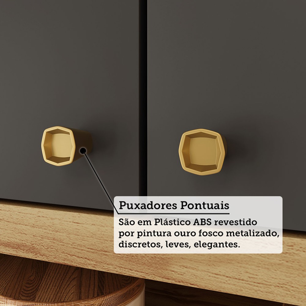 Observação - Objetos decorativos que aparecem nas imagens, não acompanham o produto. - Portas niveladas com moldura embutida. - Fundo em HDF 2,5mm. - Acabamento usinado com efeito canelado nas portas.