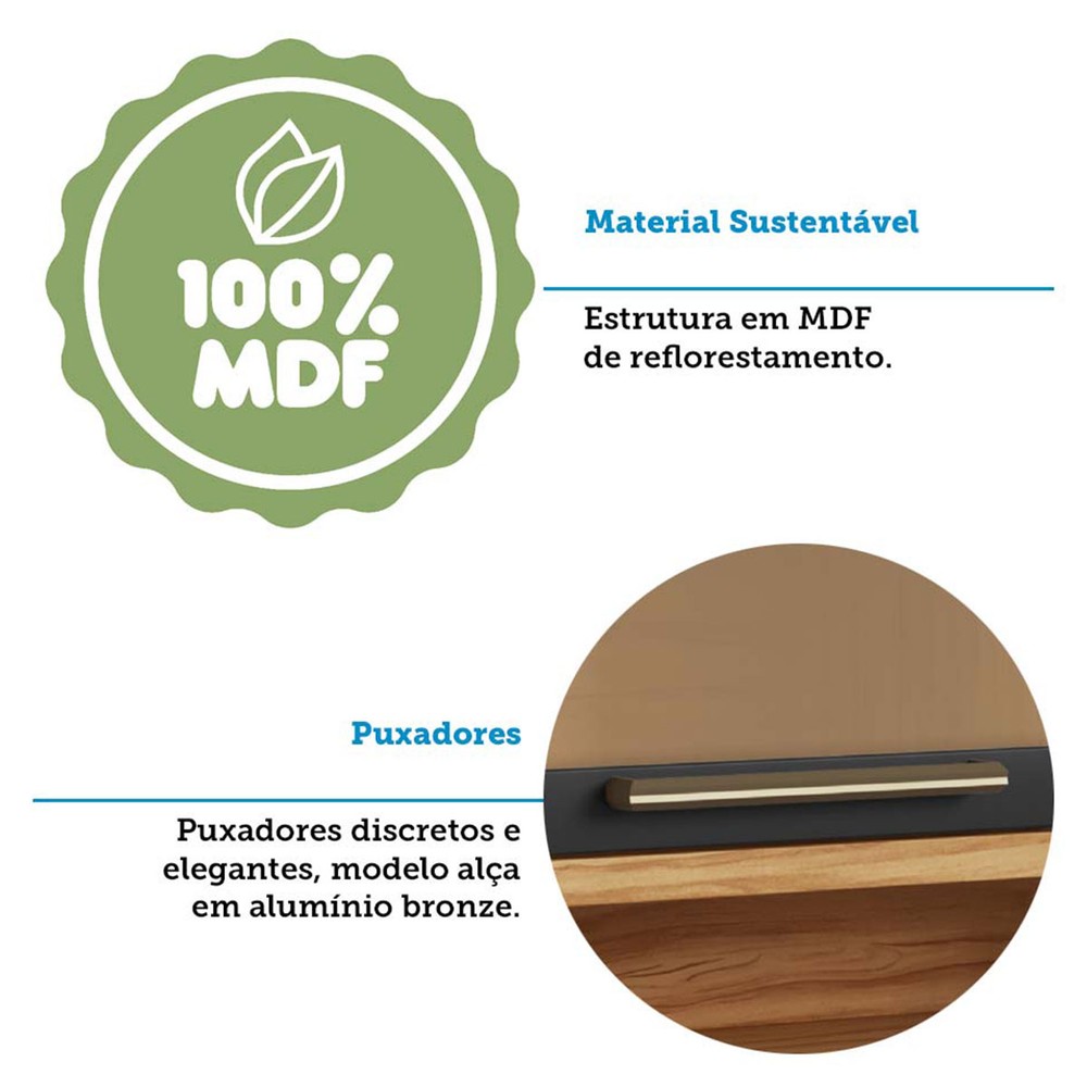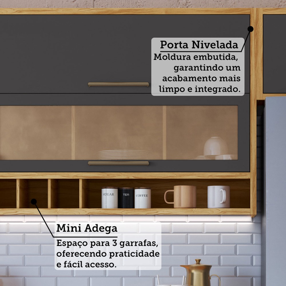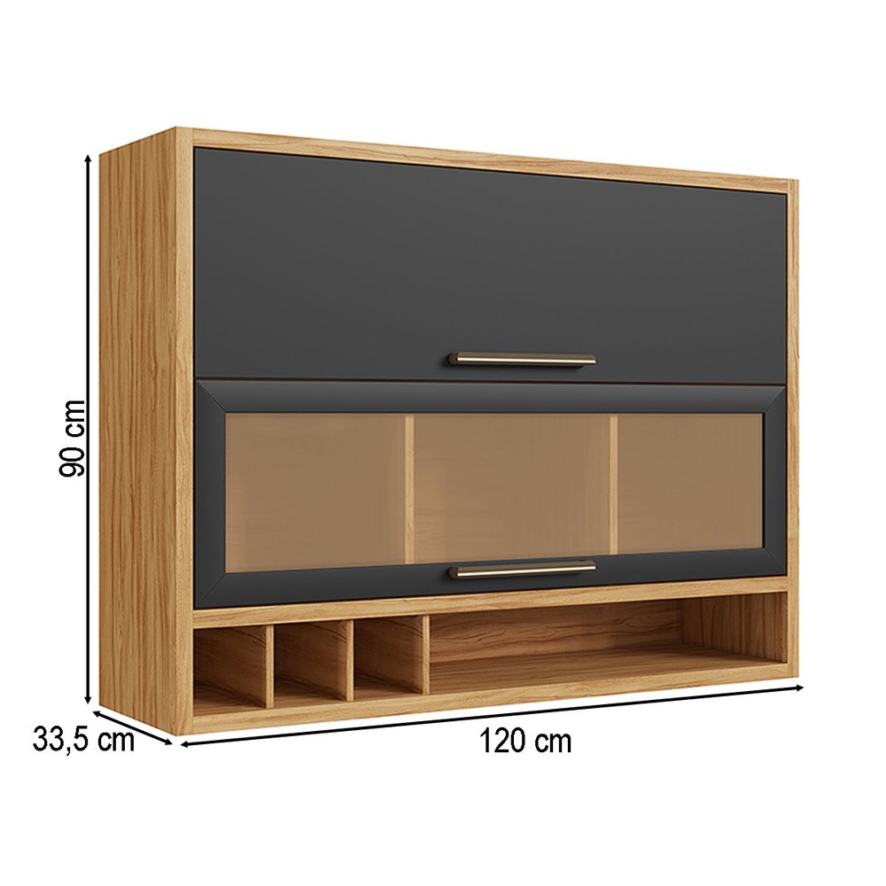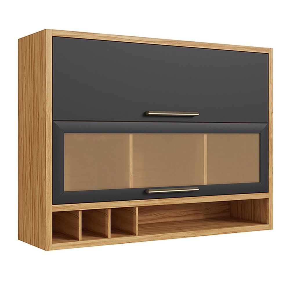 Armário Aéreo Cozinha 120 Cm Syrah 2 Portas com Vidro 100% Mdf Amêndoa/Chumbo - Rio Doce