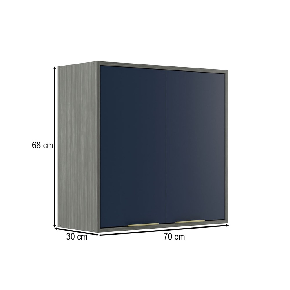 Armário Aéreo Cozinha 70 Cm Domus 2 Portas Silver/Royal - Hecol Móveis