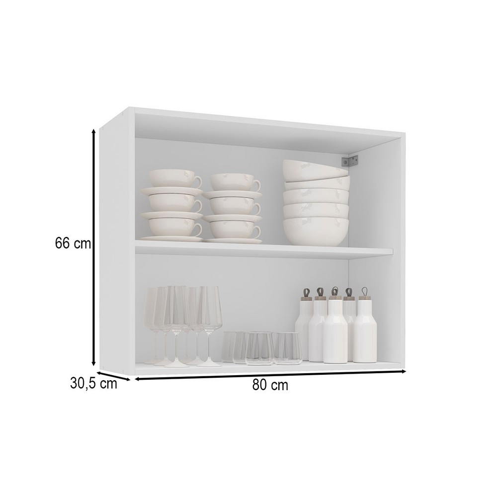 O(a) Armário Aéreo Cozinha 80 Cm Amara 2 Portas Branco - Politorno é produzido em MDF e MDP na escala de brilho Semi-Fosco, e possui um grau de dificuldade de montagem: Médio.
