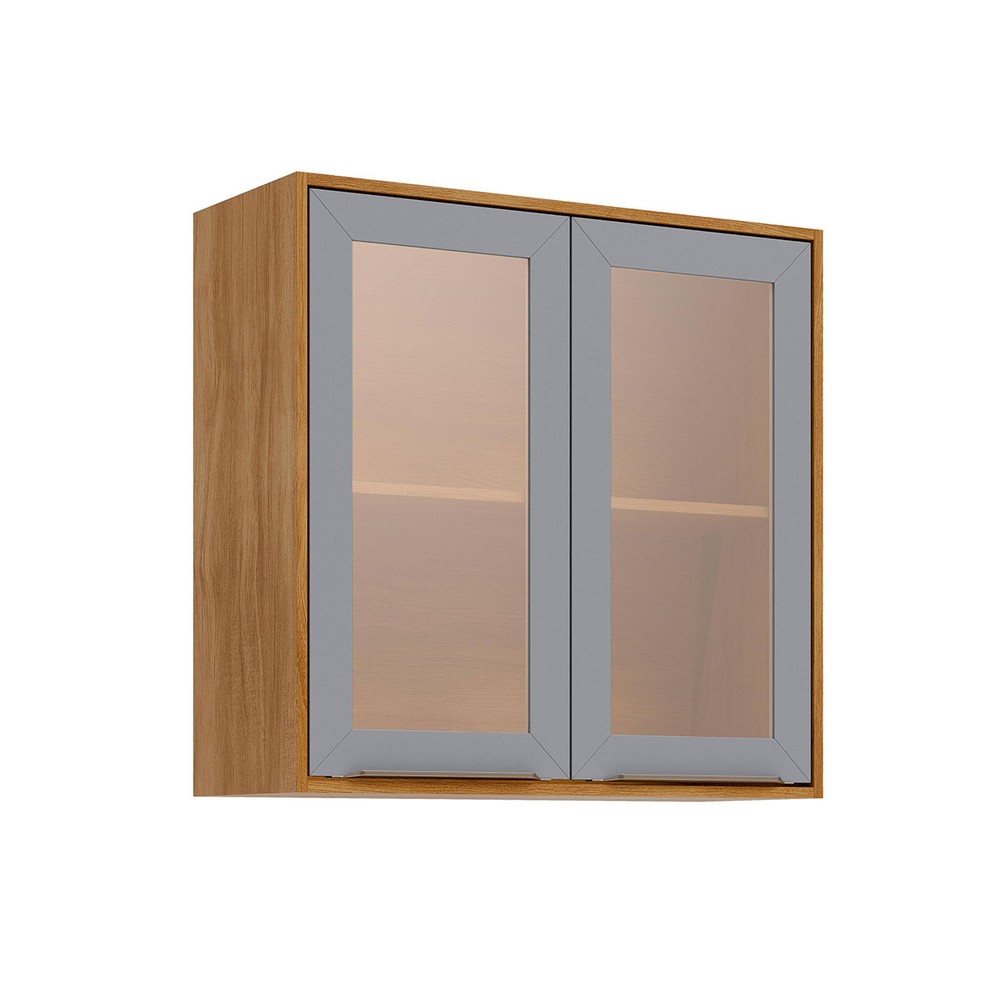 O(a) Armário Aéreo Cozinha 80 Cm Brilhante 2 Portas Reflecta 100% Mdf Cinamomo/Platina - Mgm Móveis é produzido em 100% MDF na escala de brilho Fosco, e possui um grau de dificuldade de montagem: Médio.