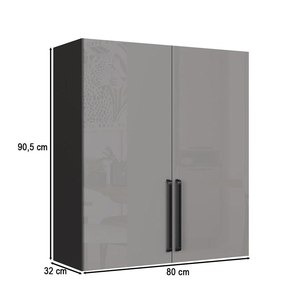 Armario Aereo Cozinha 80 Cm Diamante 2 Portas Chumbo/Titanio - Indékes