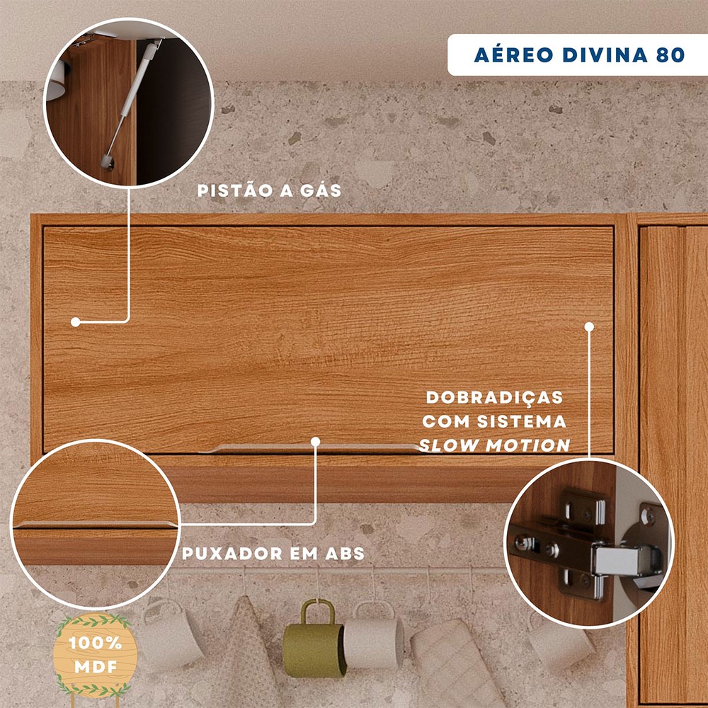O(a) Armário Aéreo Cozinha 80 Cm Divina 1 Porta Cinamomo - Mgm Móveis é produzido em MDF na escala de brilho Fosco, e possui um grau de dificuldade de montagem: Médio.