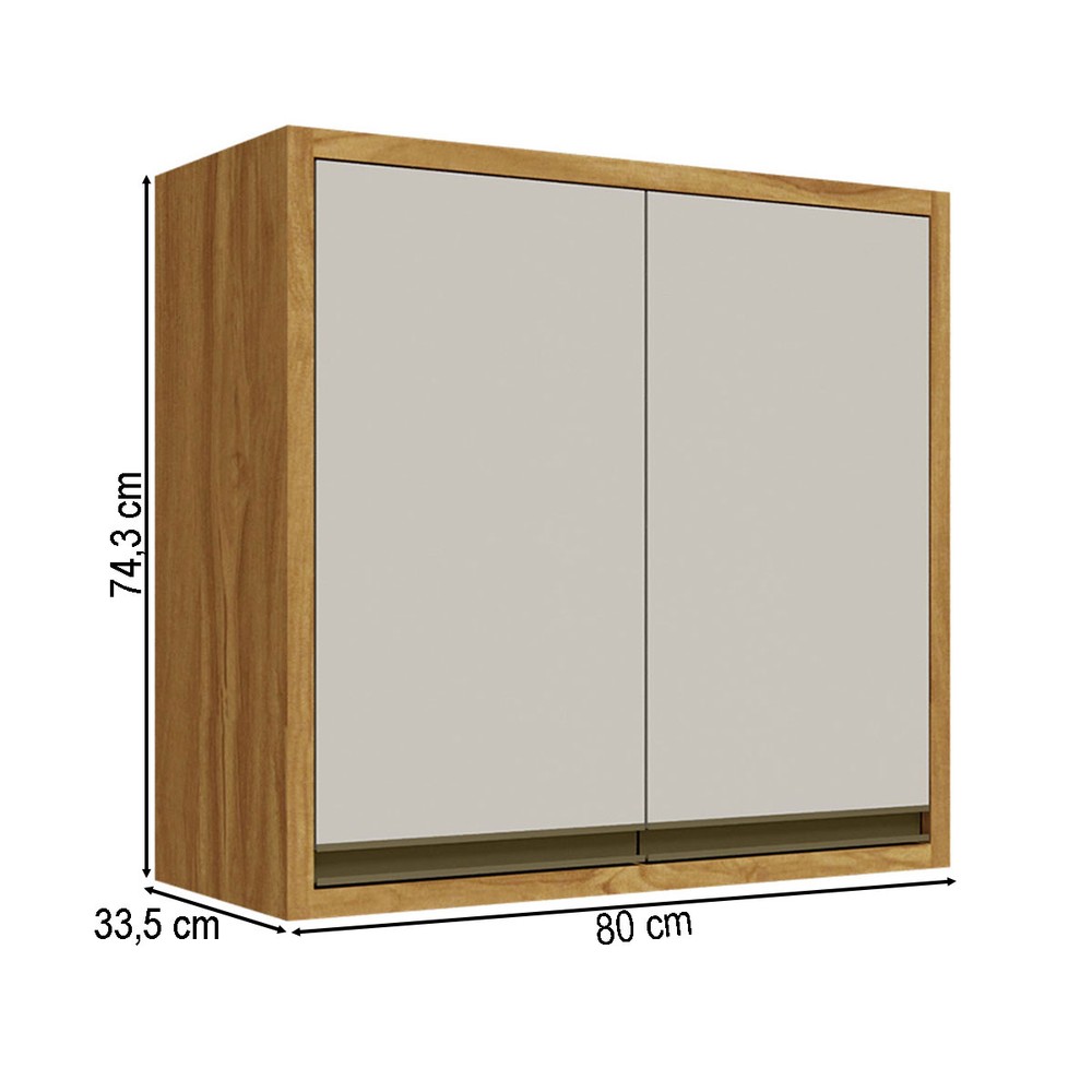 Armário Aéreo Cozinha 80 Cm Tempranillo 2 Portas 100% Mdf  Amêndoa/Off White - Rio Doce