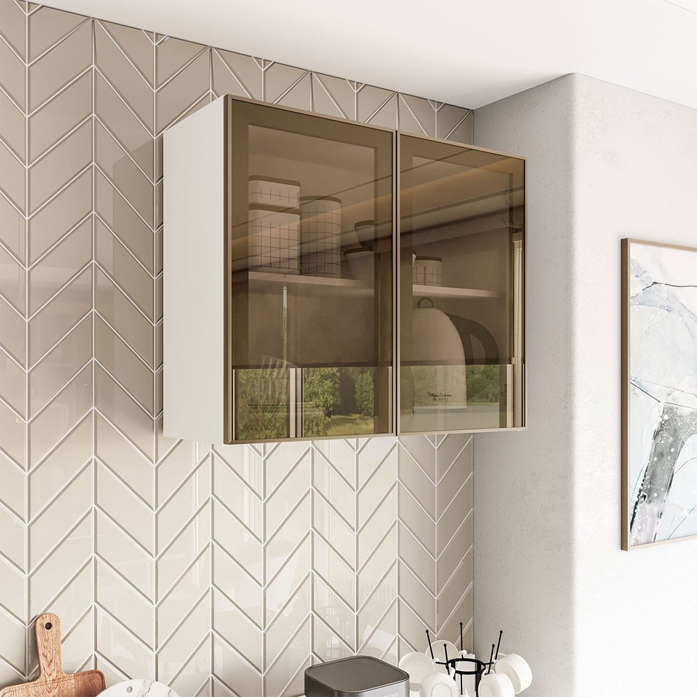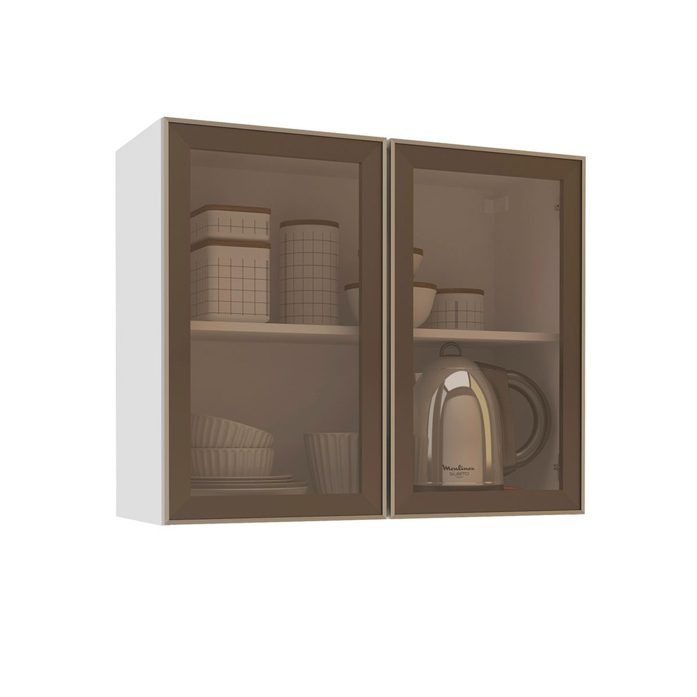 Armário Aéreo Cozinha Amara 2 Portas com Vidro Branco/Fume - Politorno