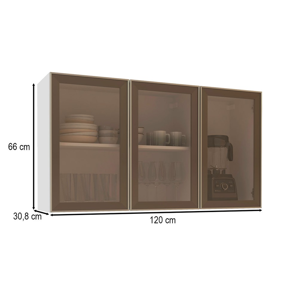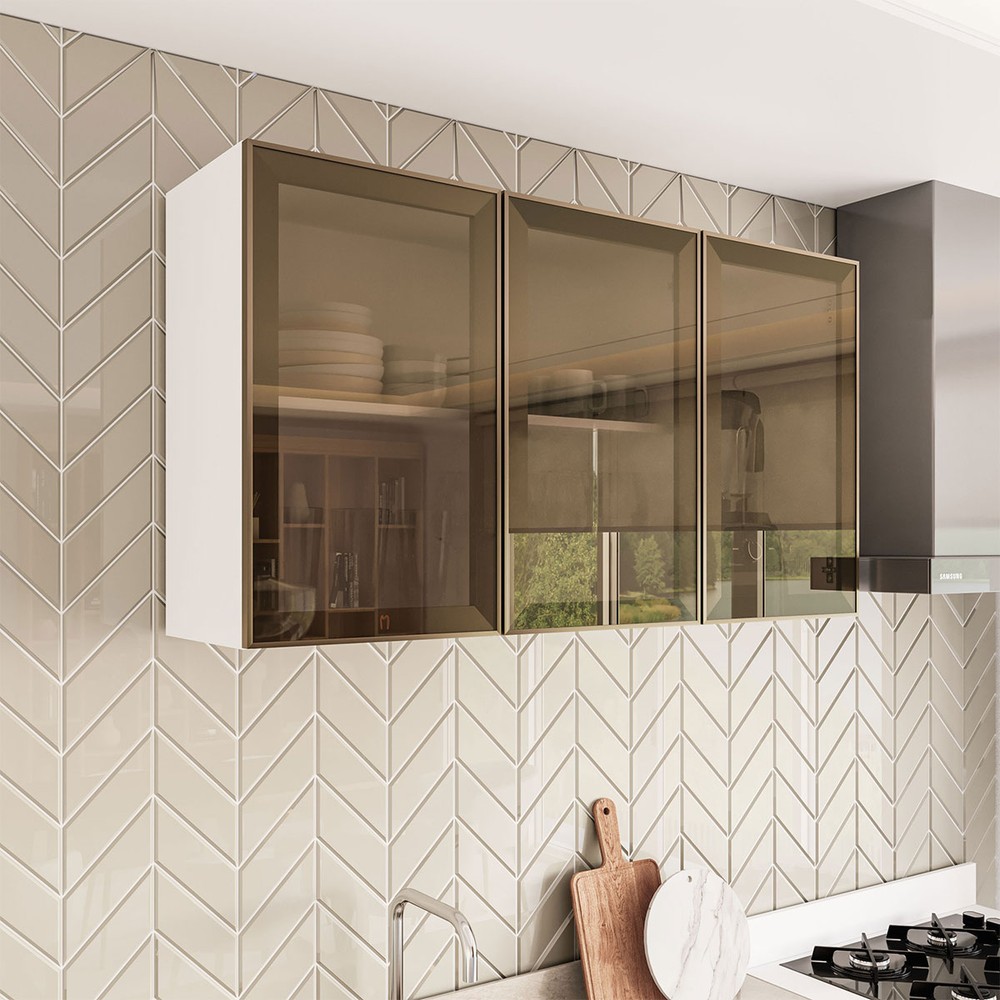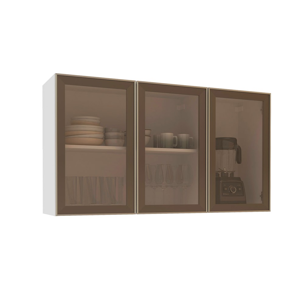Armário Aéreo Cozinha Amara 3 Portas com Vidro Branco/Fume - Politorno