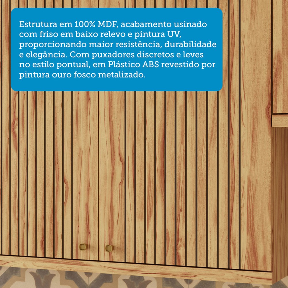Observação - Objetos decorativos que aparecem nas imagens, não acompanham o produto. - Portas niveladas com moldura embutida. - Fundo em HDF 2,5mm. - Acabamento usinado com friso em baixo relevo nas portas.