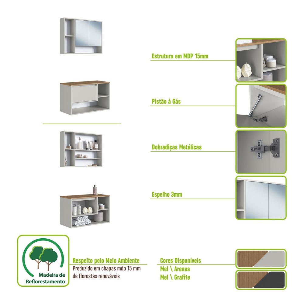 Armário de Banheiro Bacelona 3 Portas com Espelho Arenas - Art In Móveis