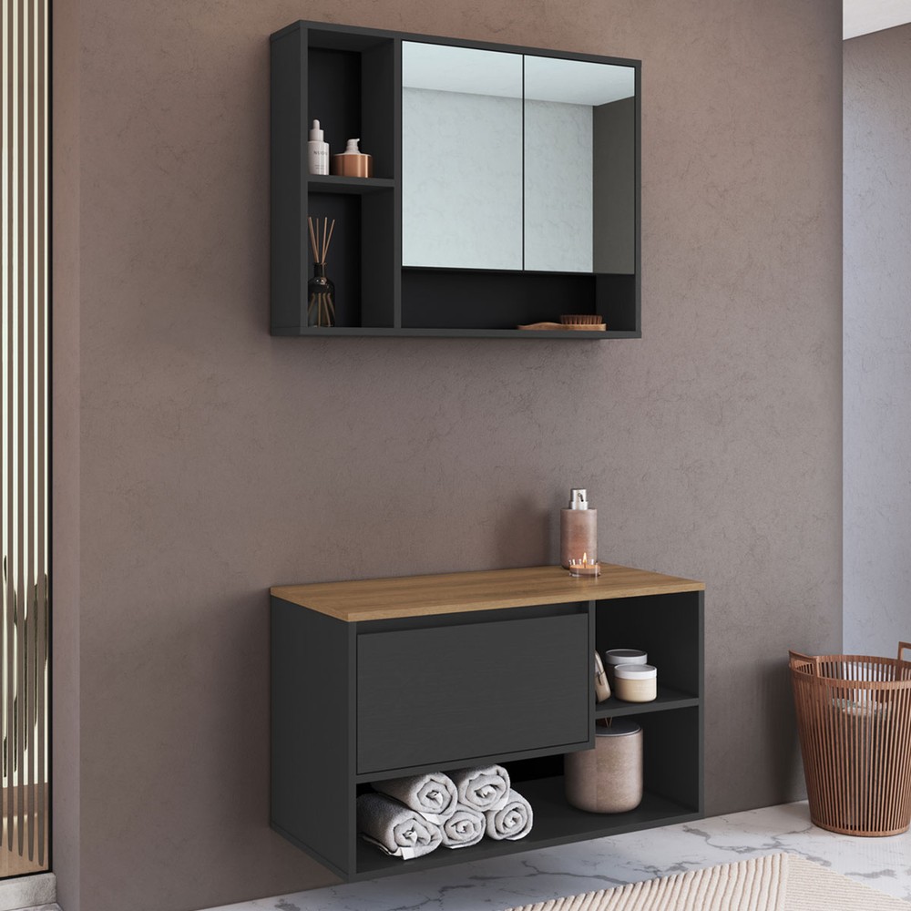 Armário de Banheiro Bacelona 3 Portas com Espelho Grafite - Art In Móveis