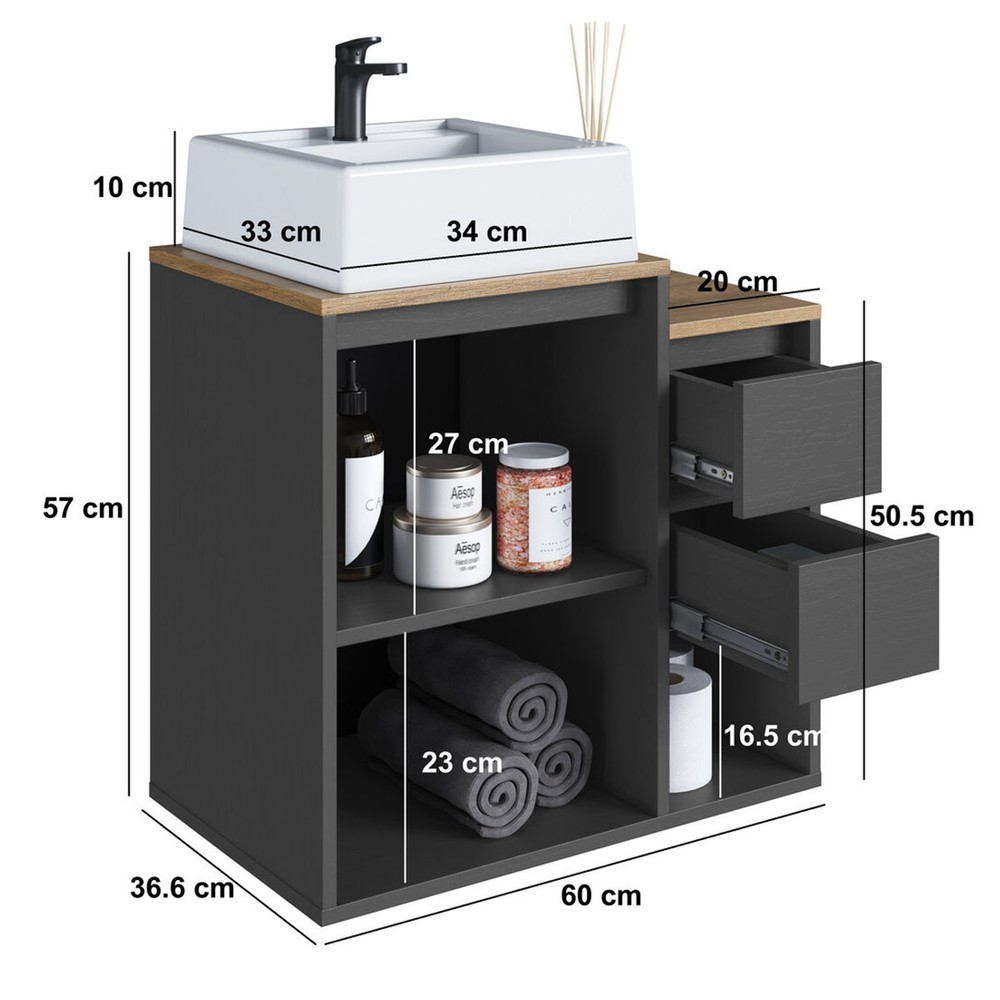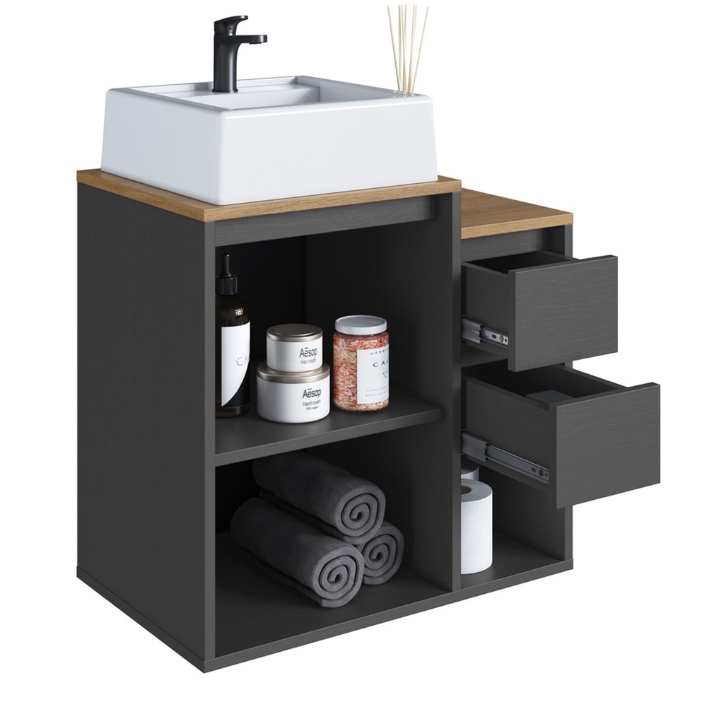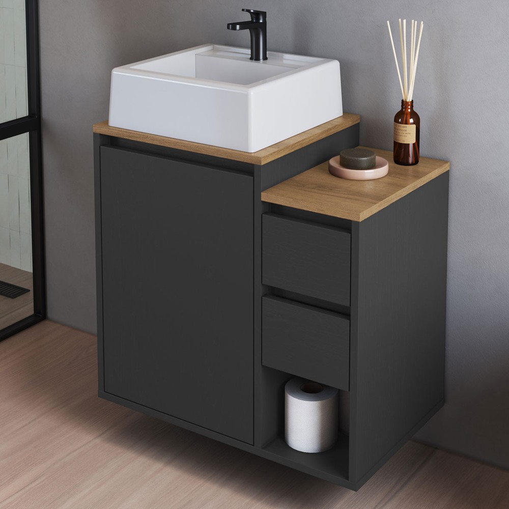 Armário de Banheiro Bahamas 1 Porta 2 Gavetas com Cuba Grafite - Art In Móveis
