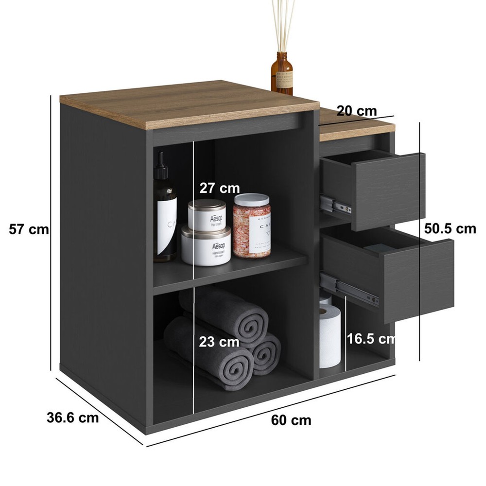 Armário de Banheiro Bahamas 1 Porta 2 Gavetas Grafite - Art In Móveis
