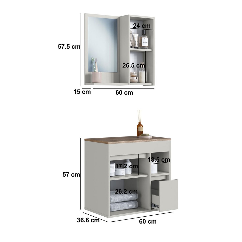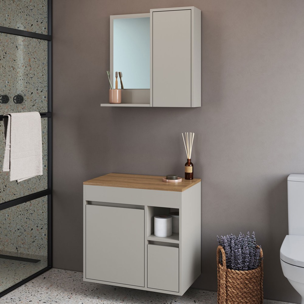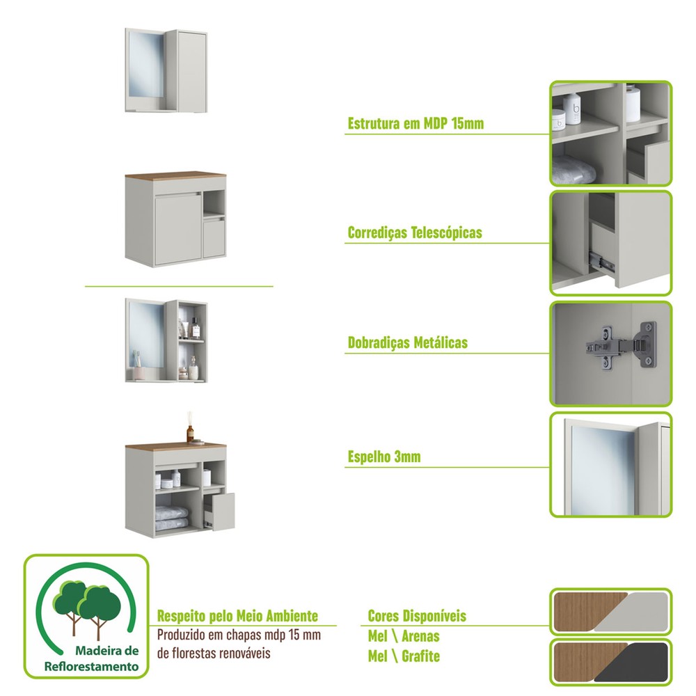 Armário de Banheiro Bahamas 2 Portas 1 Gaveta com Espelho Arenas - Art In Móveis