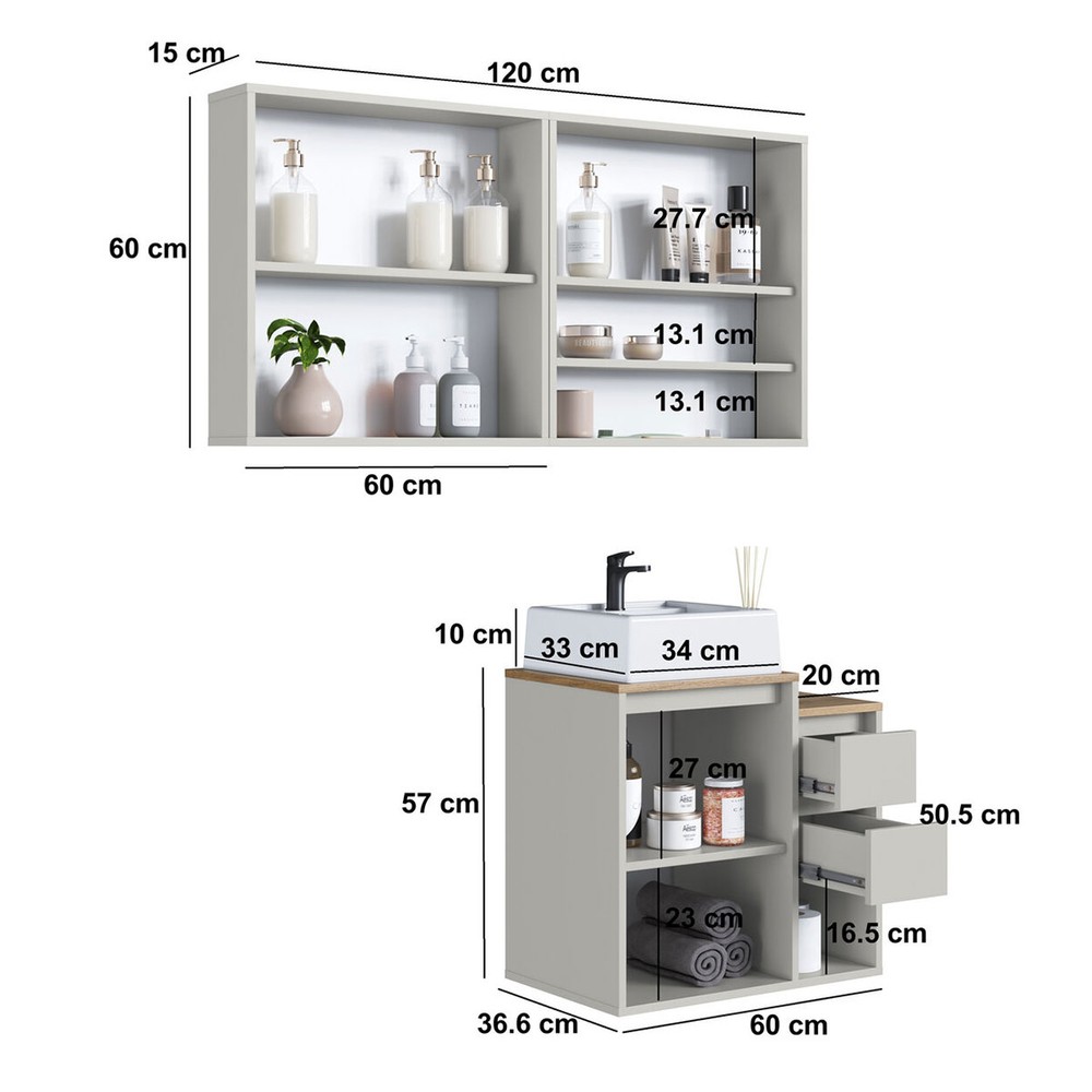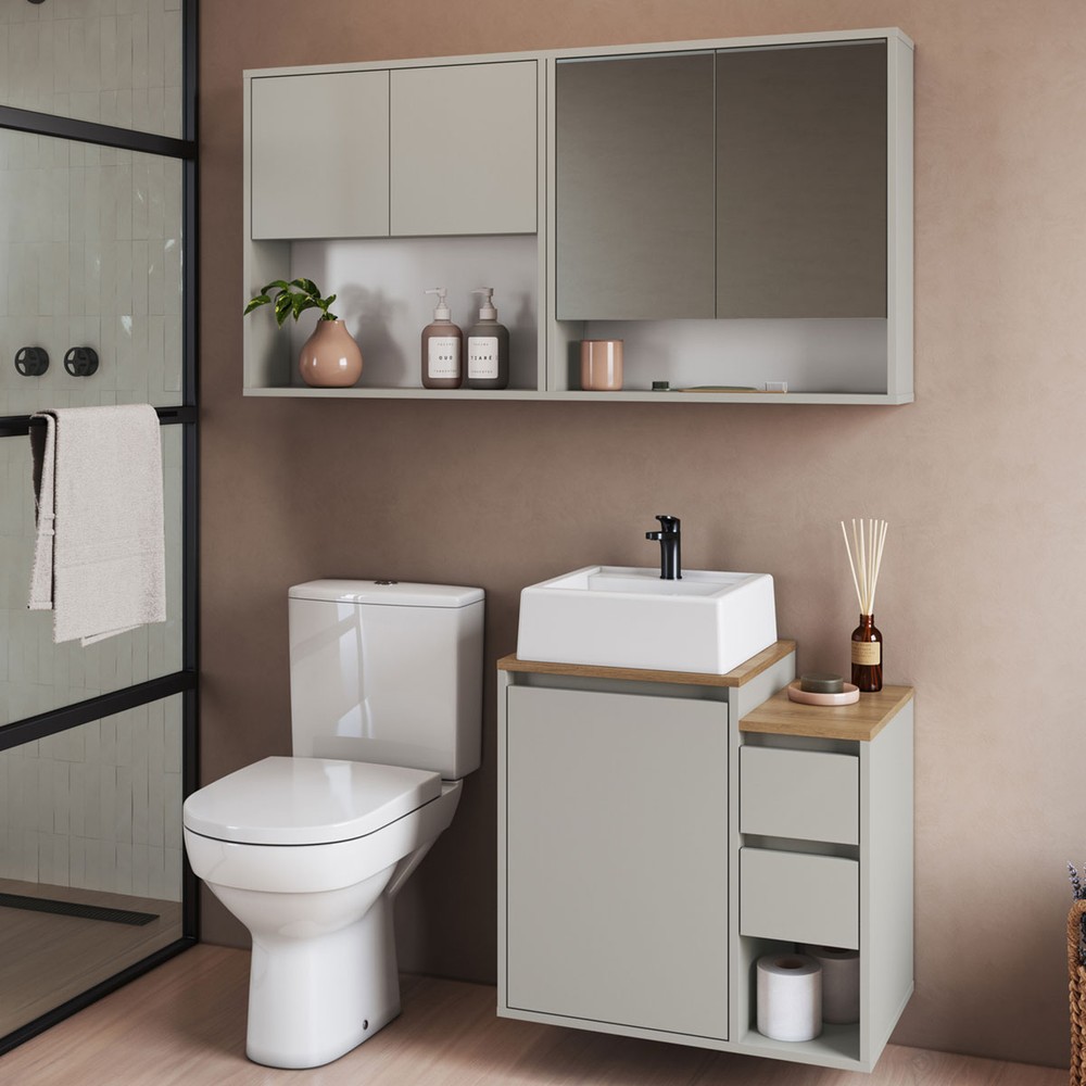 Armário de Banheiro Bahamas 5 Portas 2 Gavetas com Cuba e Espelho Arenas - Art In Móveis