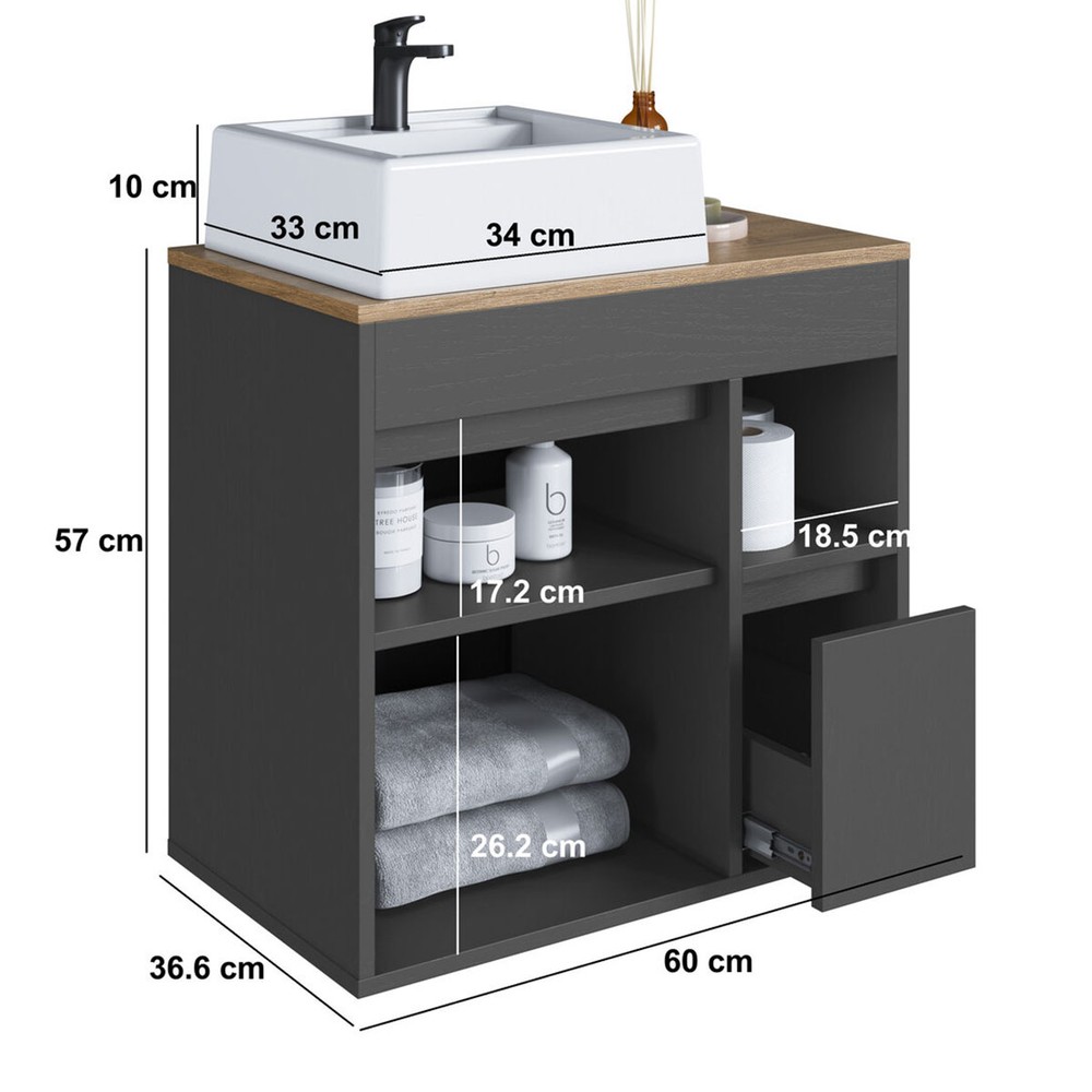 Armário de Banheiro Bangladesh 1 Porta 1 Gaveta com Cuba Grafite - Art In Móveis