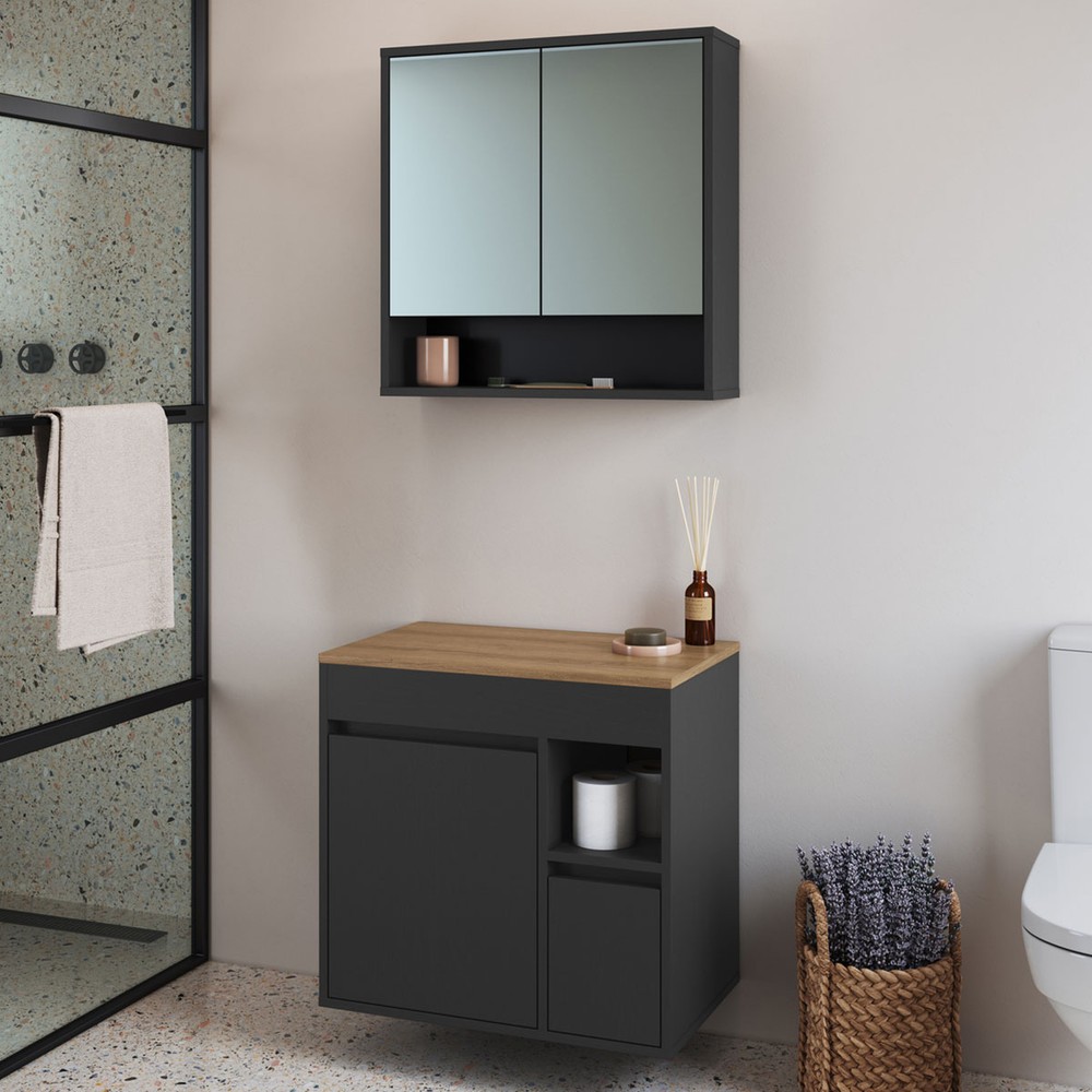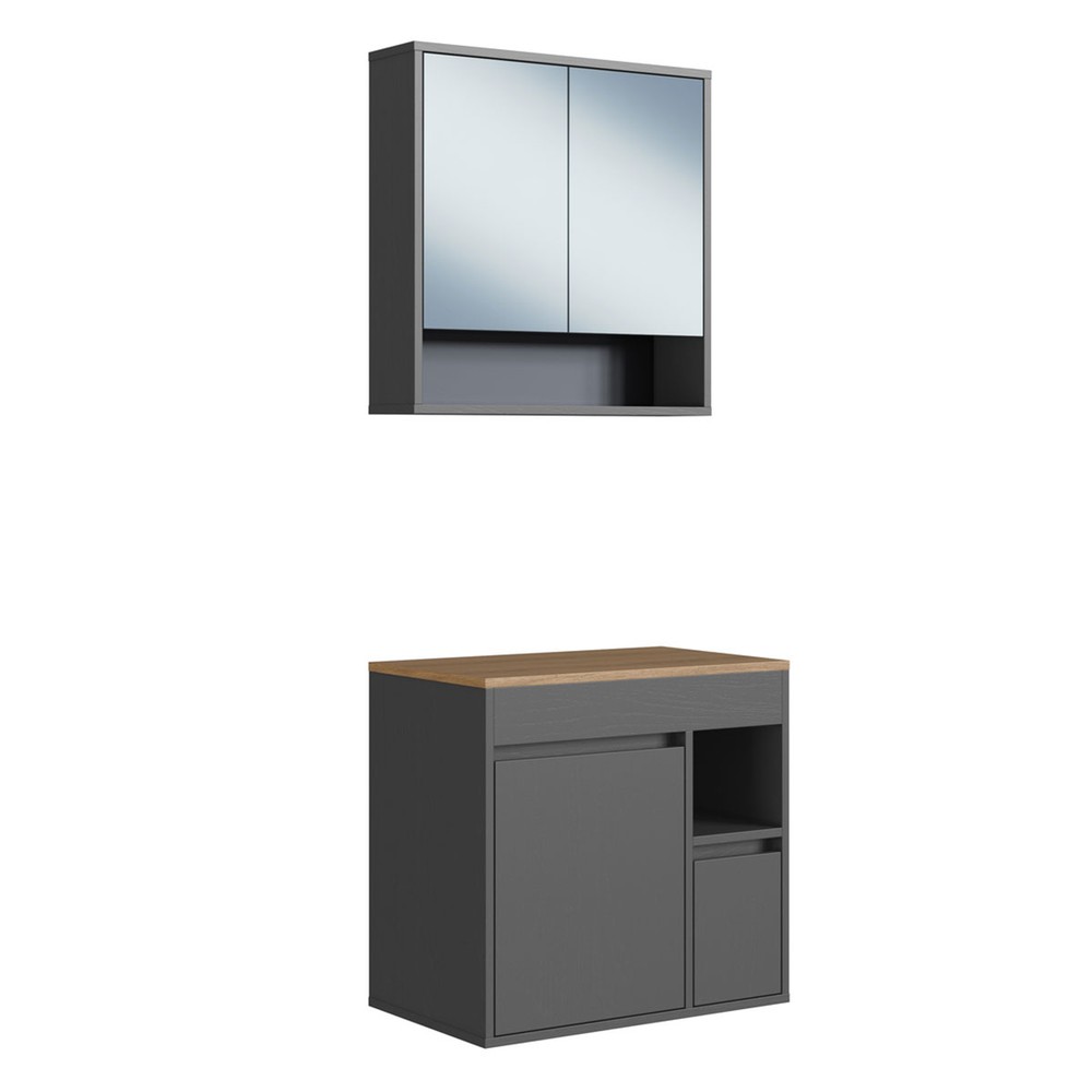 Armário de Banheiro Bangladesh 3 Portas 1 Gaveta com Espelho Grafite - Art In Móveis