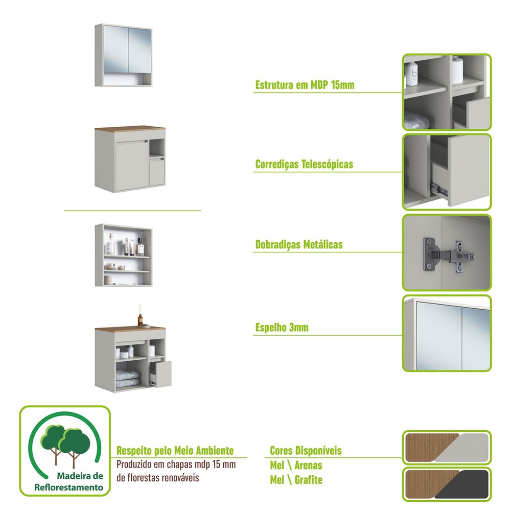 Acompanha Armário de Banheiro + Kit ferragens + Manual de Montagem