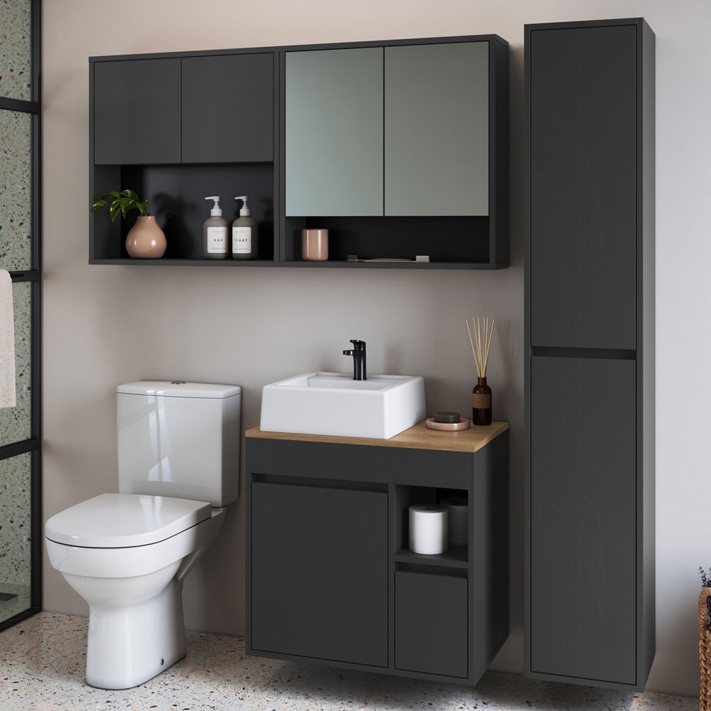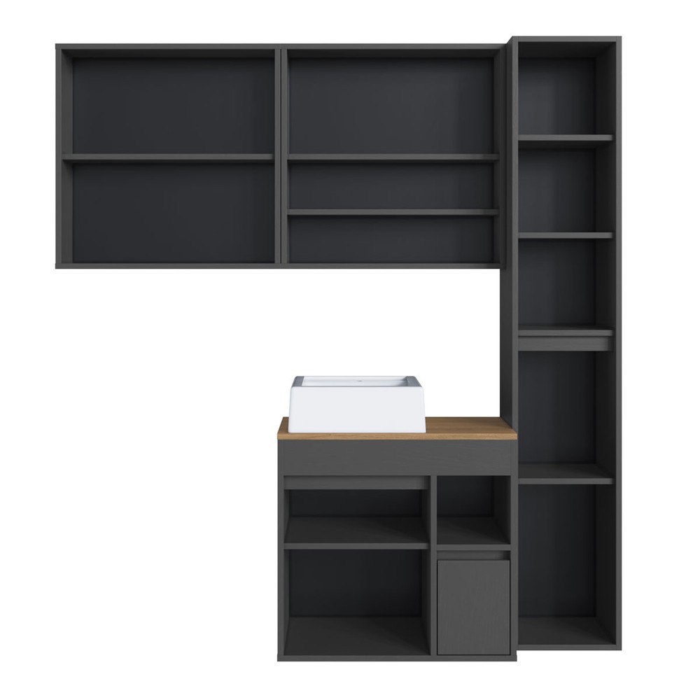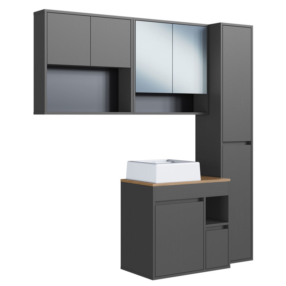 Armário de Banheiro Bangladesh 7 Portas 1 Gaveta com Cuba e Espelho Grafite - Art In Móveis