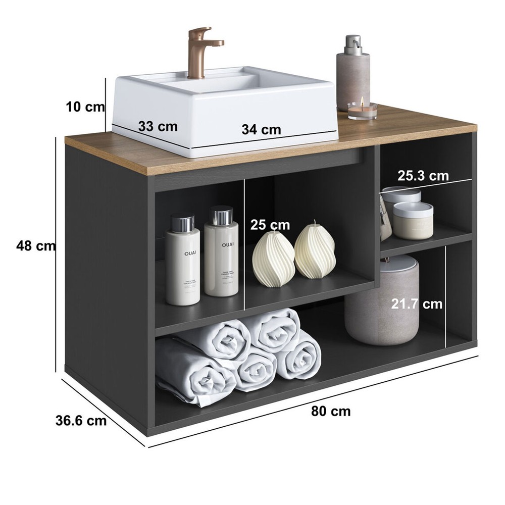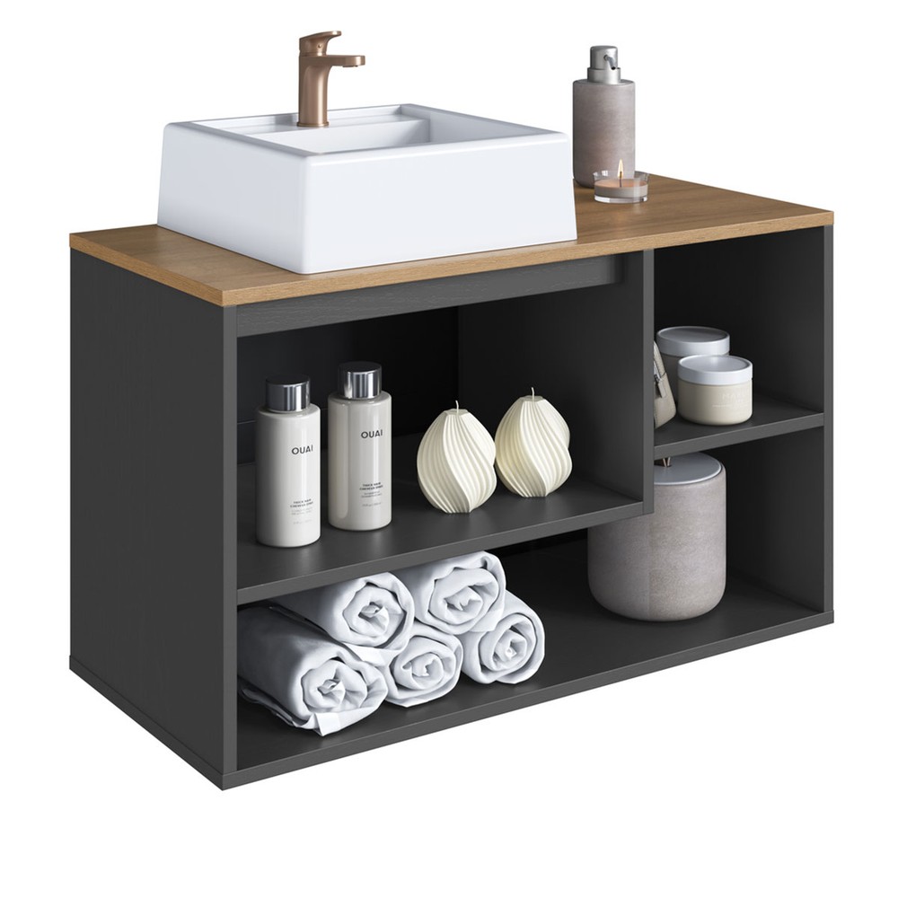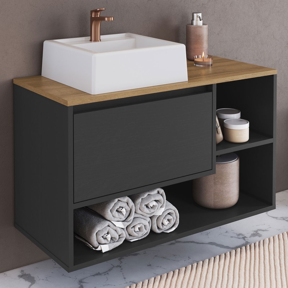 Armário de Banheiro Barcelona 1 Porta com Cuba Grafite - Art In Móveis