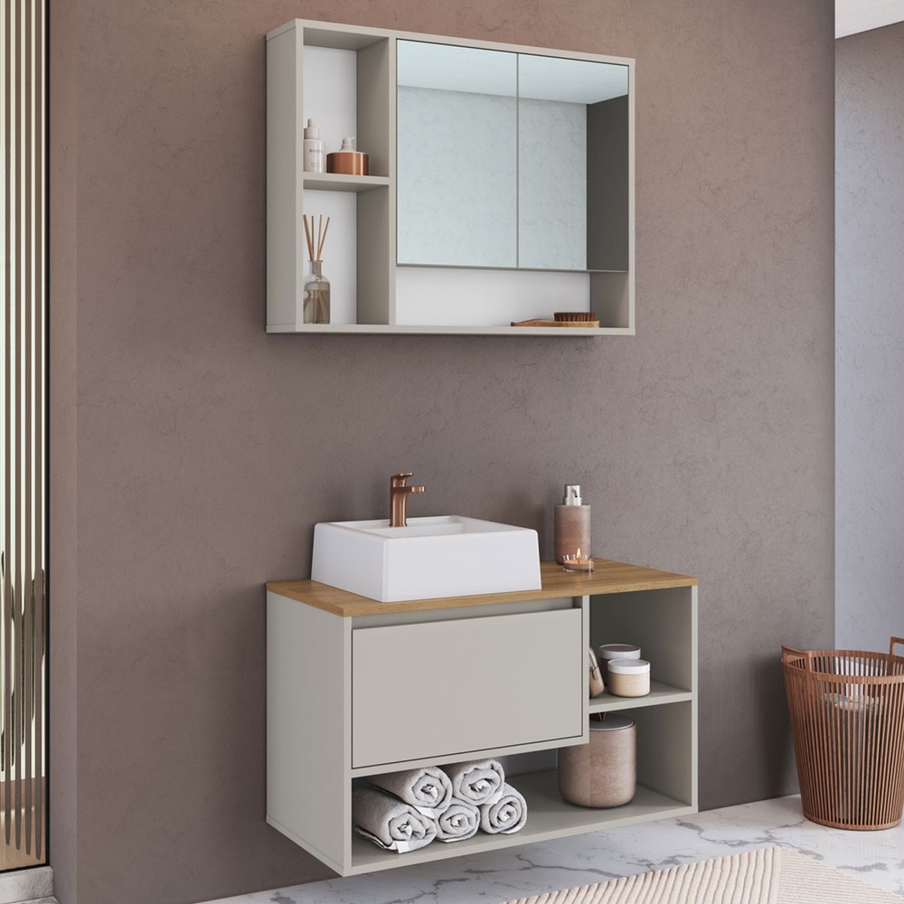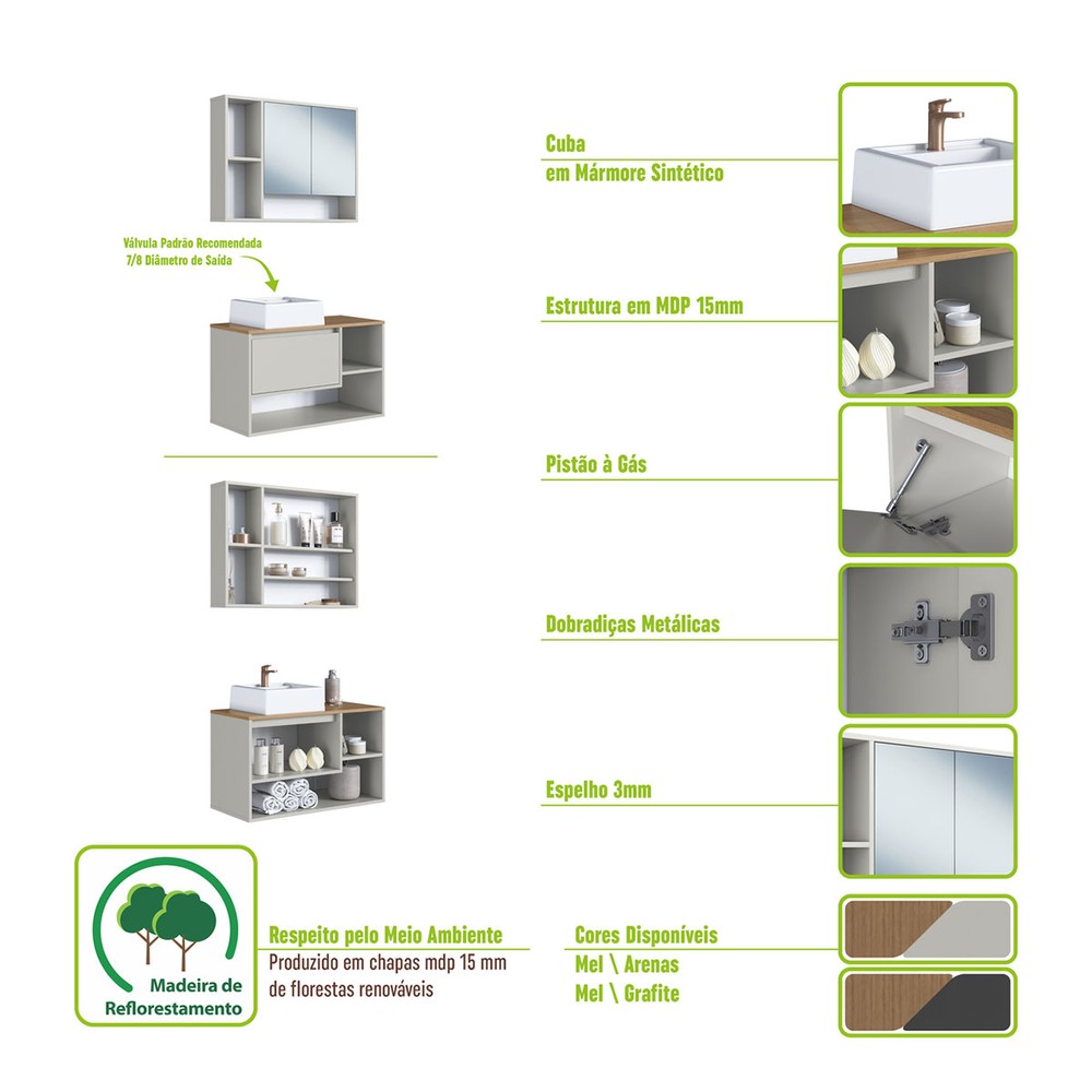 Armário de Banheiro Barcelona 3 Portas com Cuba e Espelho Arenas - Art In Móveis