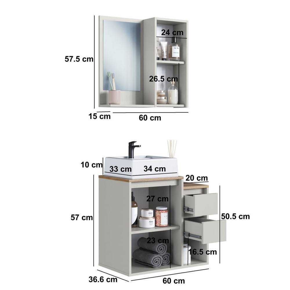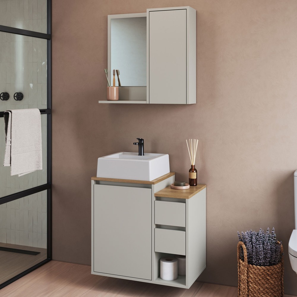 Armário de Banheiro Bari 2 Portas 2 Gavetas com Cuba e Espelho Arenas - Art In Móveis
