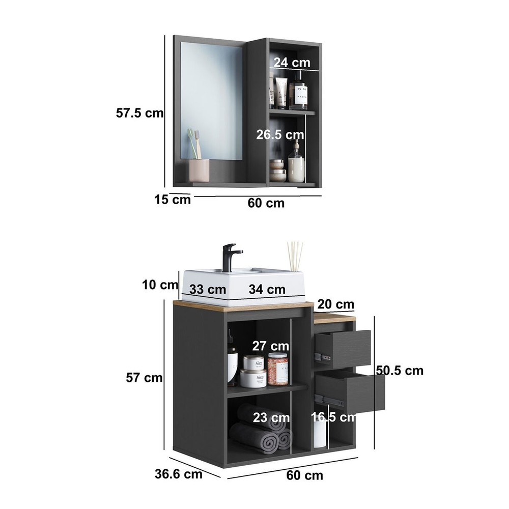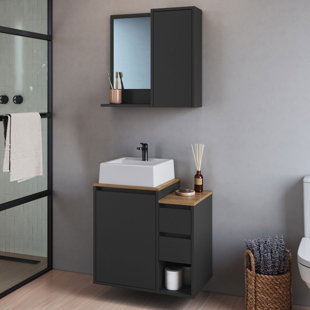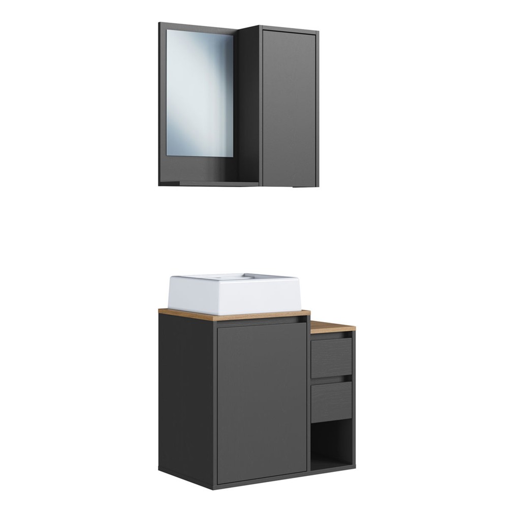 Armário de Banheiro Bari 2 Portas 2 Gavetas com Cuba e Espelho Grafite - Art In Móveis
