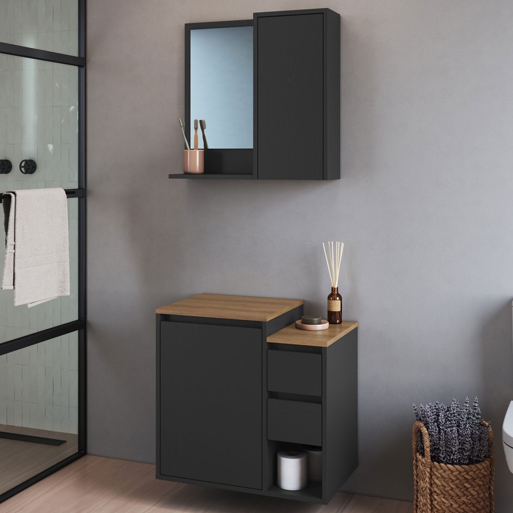 Armário de Banheiro Bari 2 Portas 2 Gavetas com Espelho Grafite - Art In Móveis