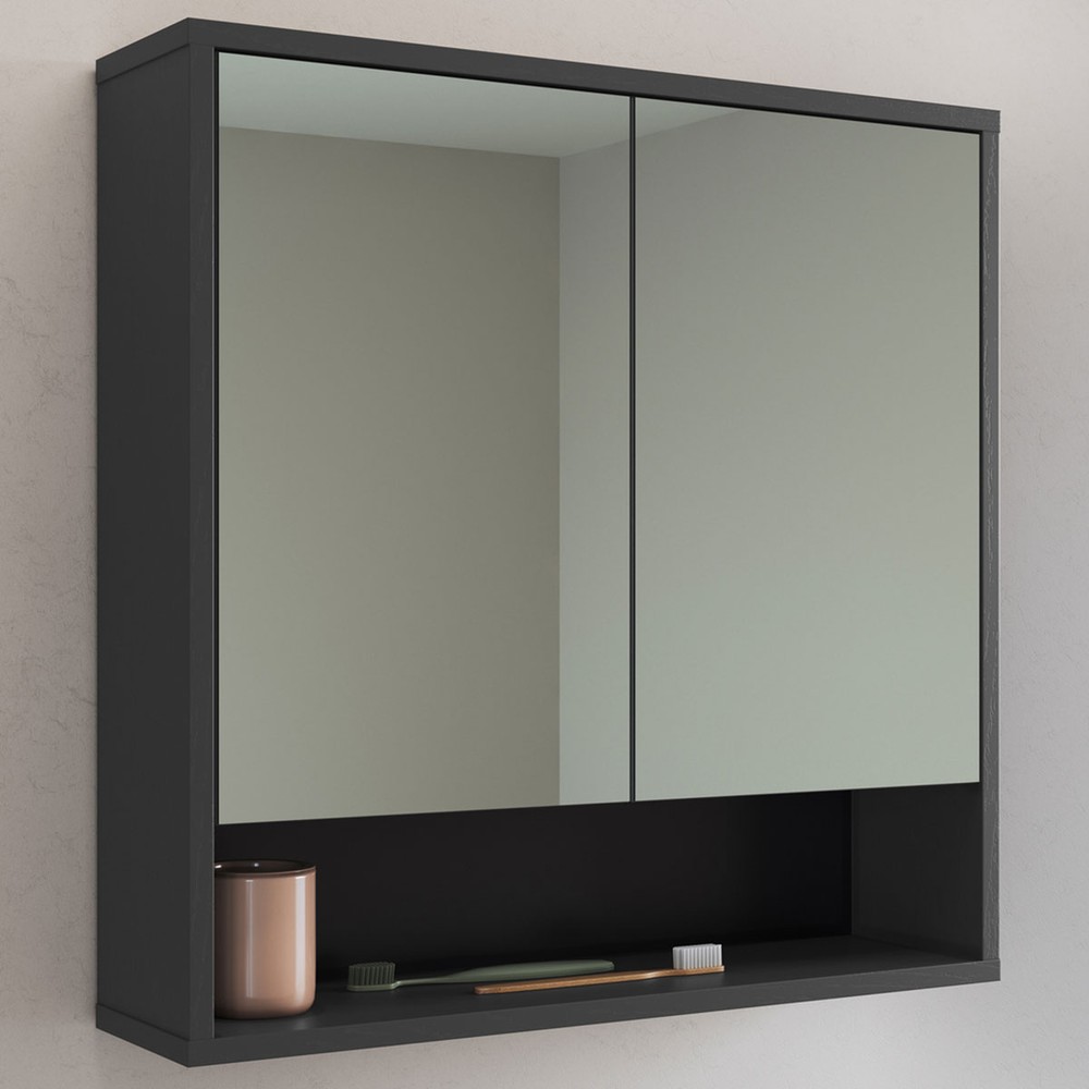 Armário de Banheiro Bari 2 Portas 60 Cm com Espelho Grafite - Art In Móveis