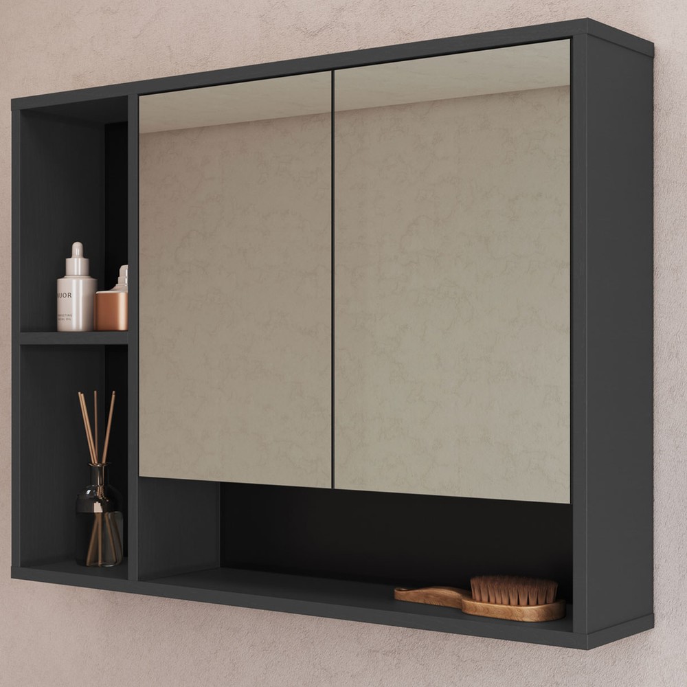 Armário de Banheiro Bari 2 Portas com Espelho Grafite - Art In Móveis