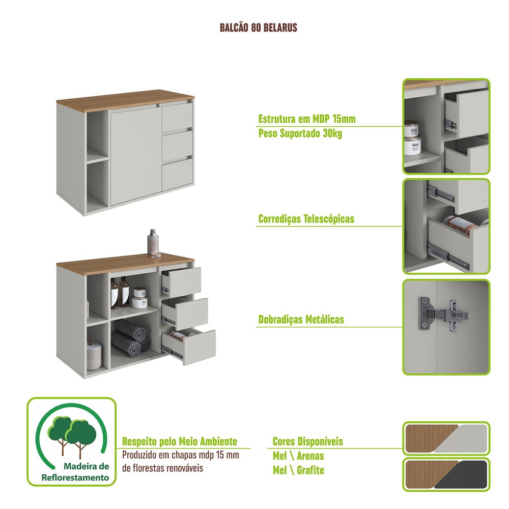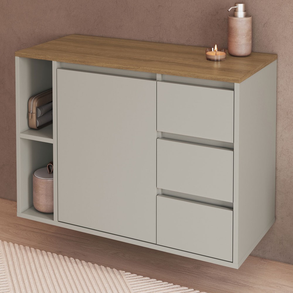 Armário de Banheiro Belagavi 1 Porta 3 Gavetas Arenas - Art In Móveis