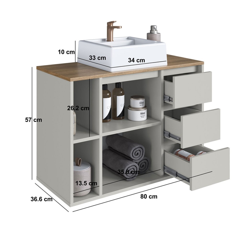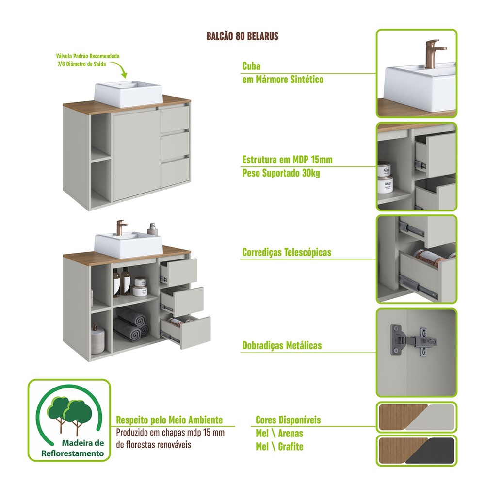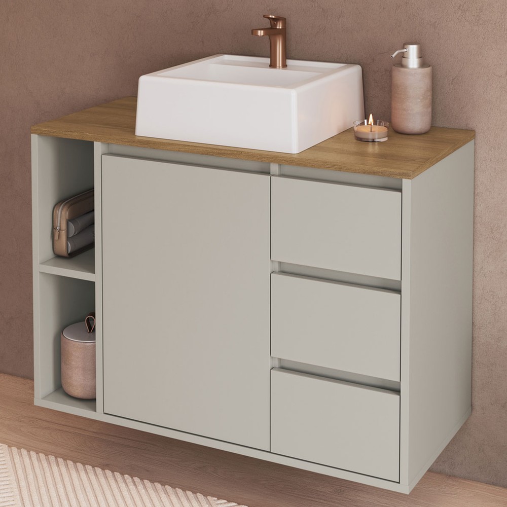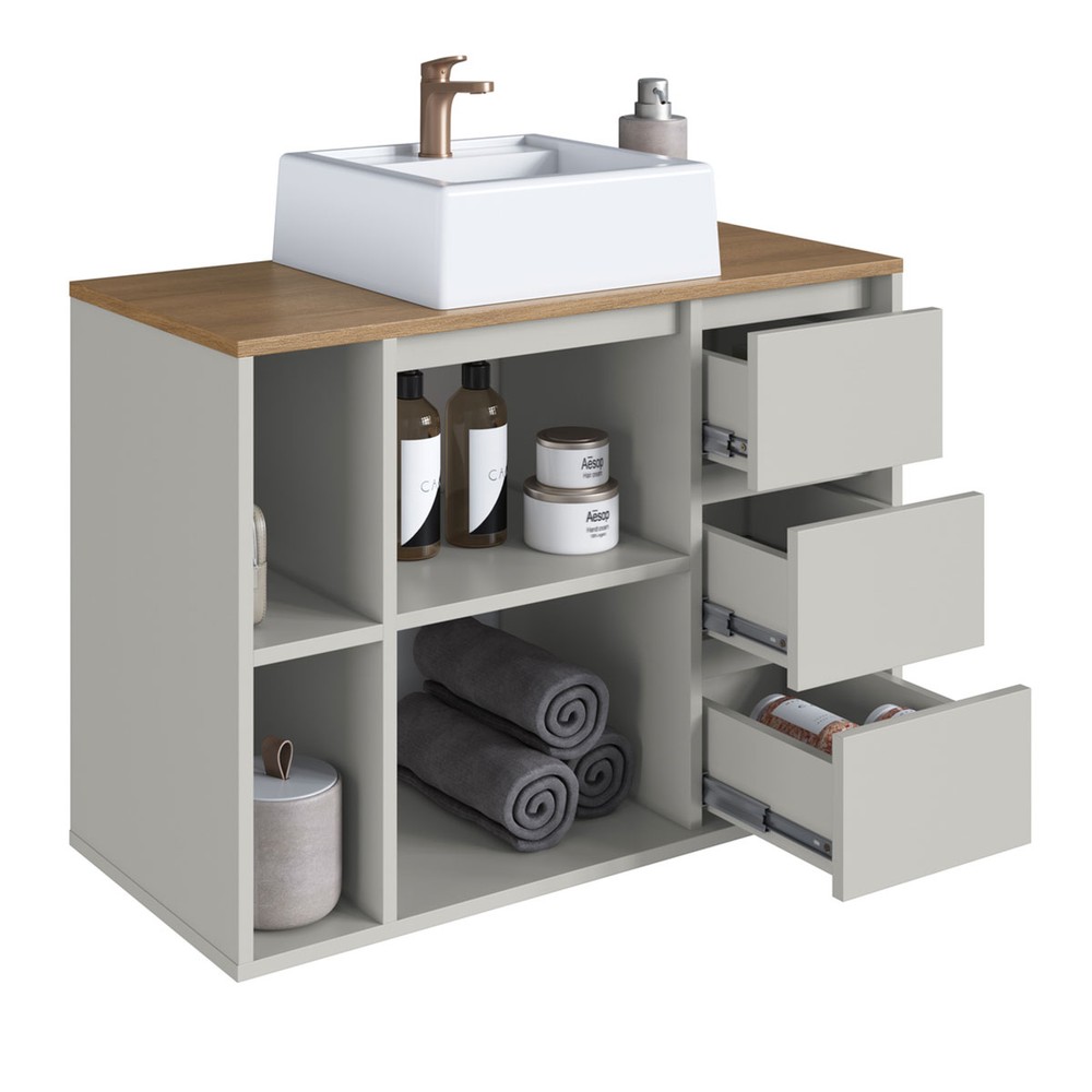 Armário de Banheiro Belagavi 1 Porta 3 Gavetas com Cuba Arenas - Art In Móveis