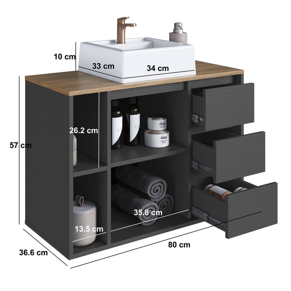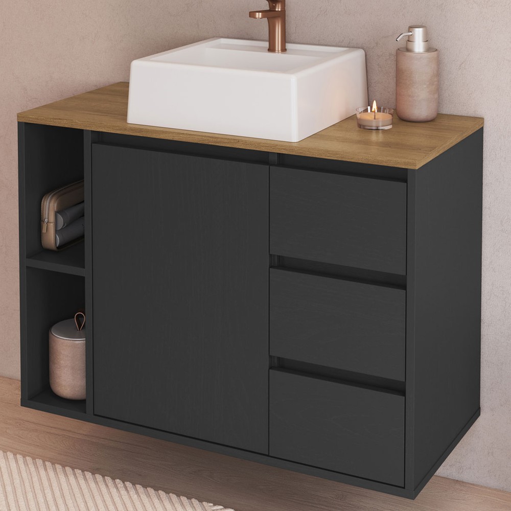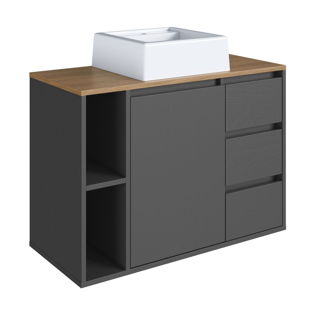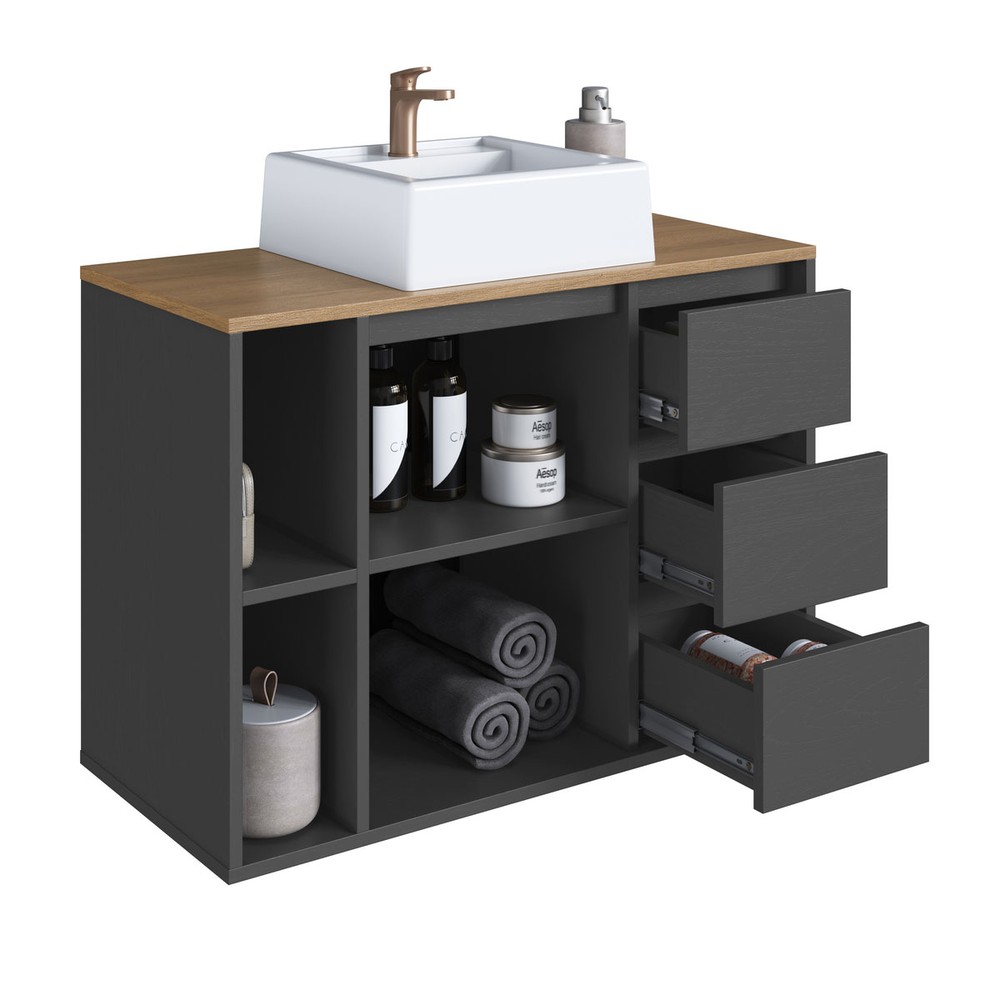 Armário de Banheiro Belagavi 1 Porta 3 Gavetas com Cuba Grafite - Art In Móveis