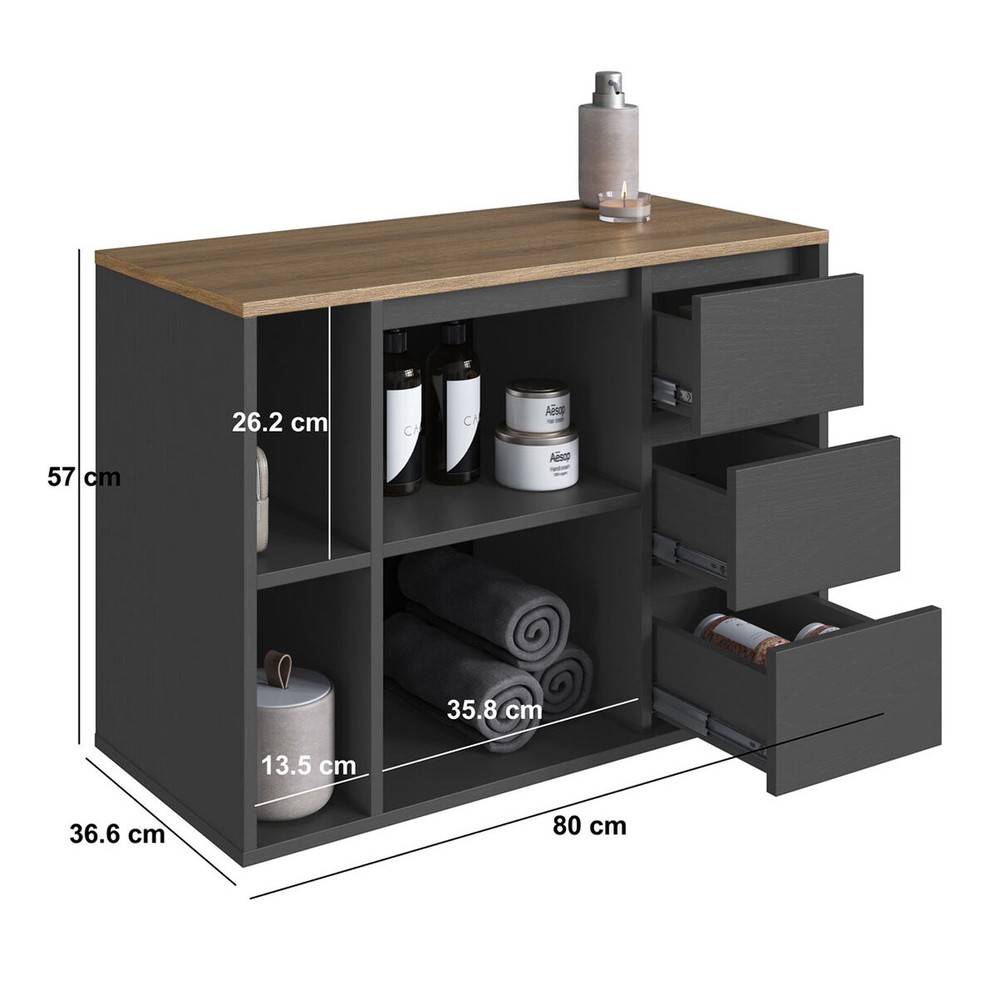 Armário de Banheiro Belagavi 1 Porta 3 Gavetas Grafite - Art In Móveis