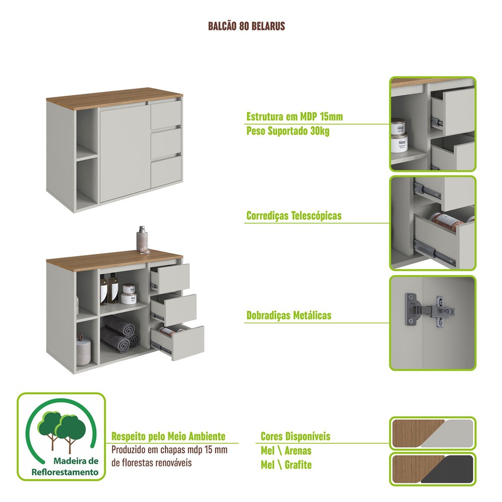O(a) Armário de Banheiro Belagavi 1 Porta 3 Gavetas Grafite - Art In Móveis é produzido em MDP na escala de brilho Fosco, e possui um grau de dificuldade de montagem: Médio.