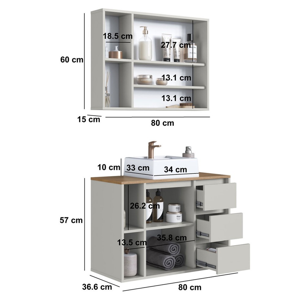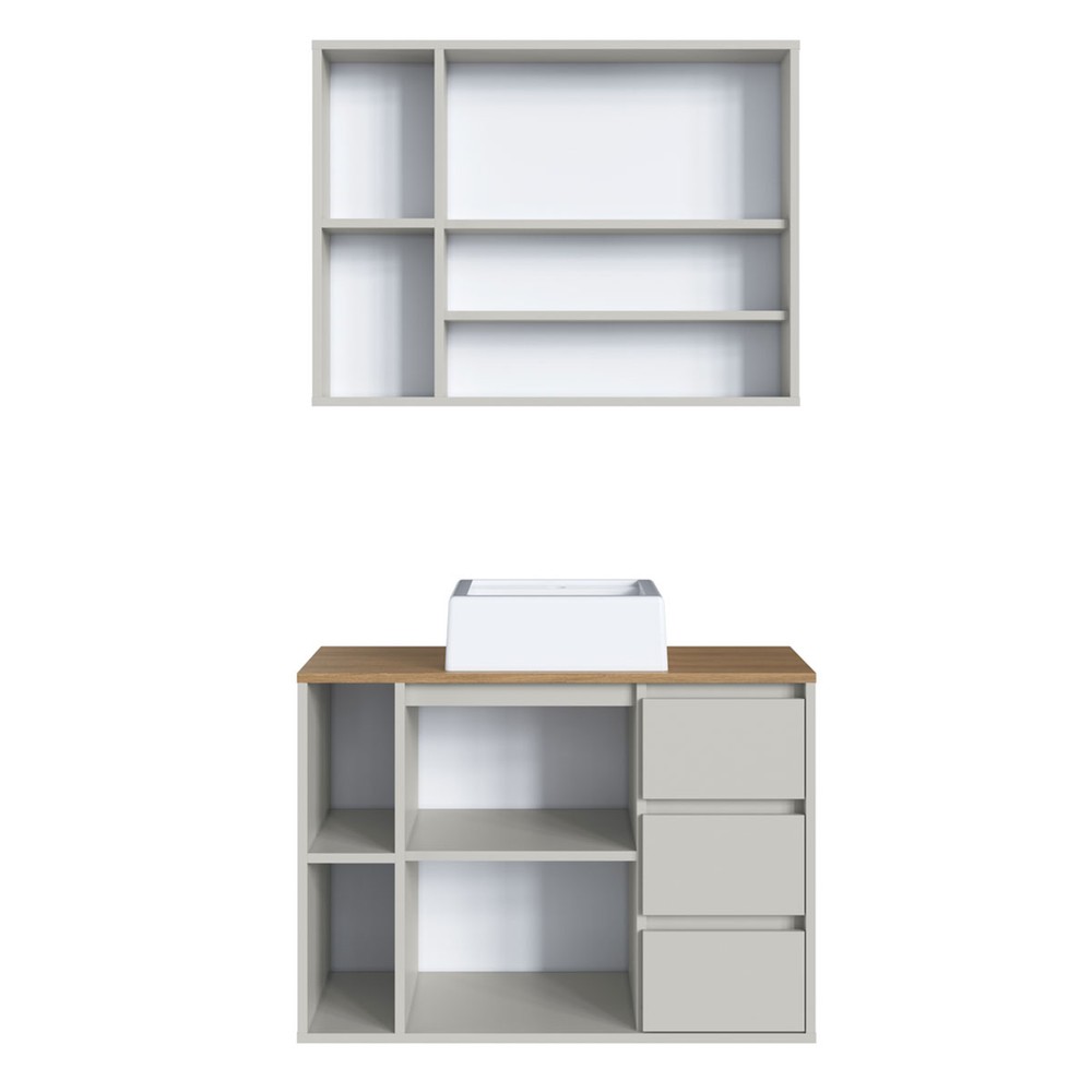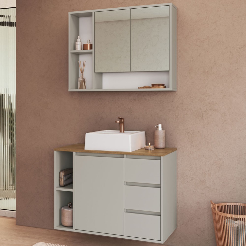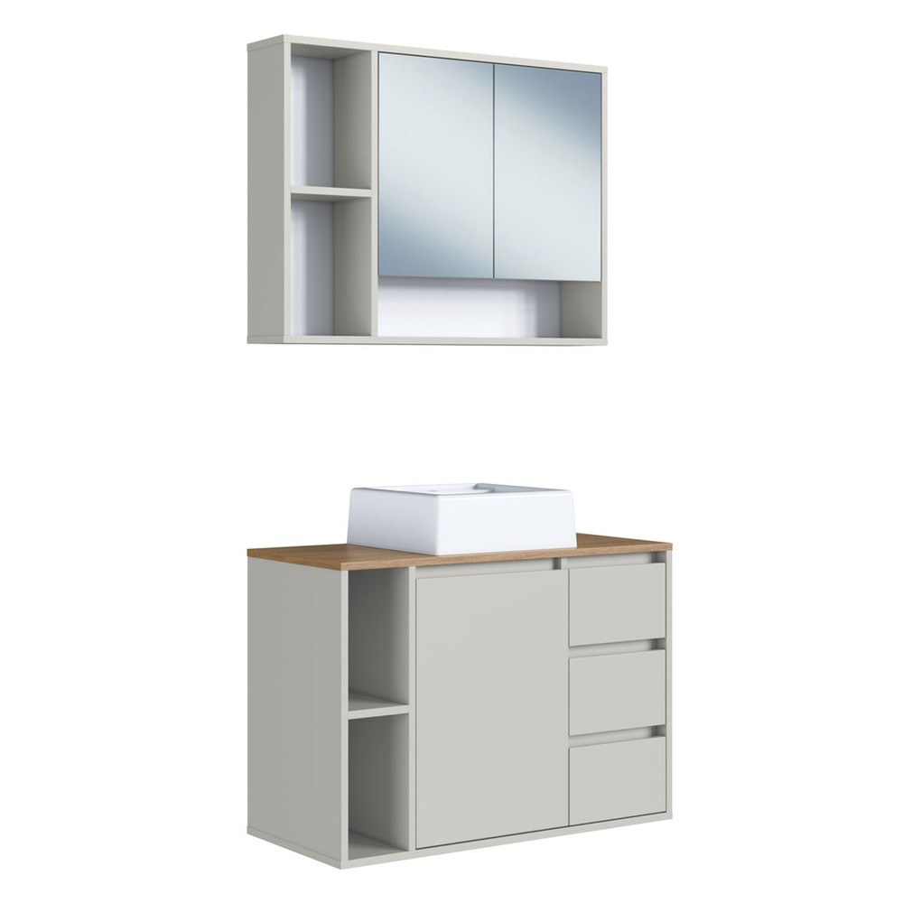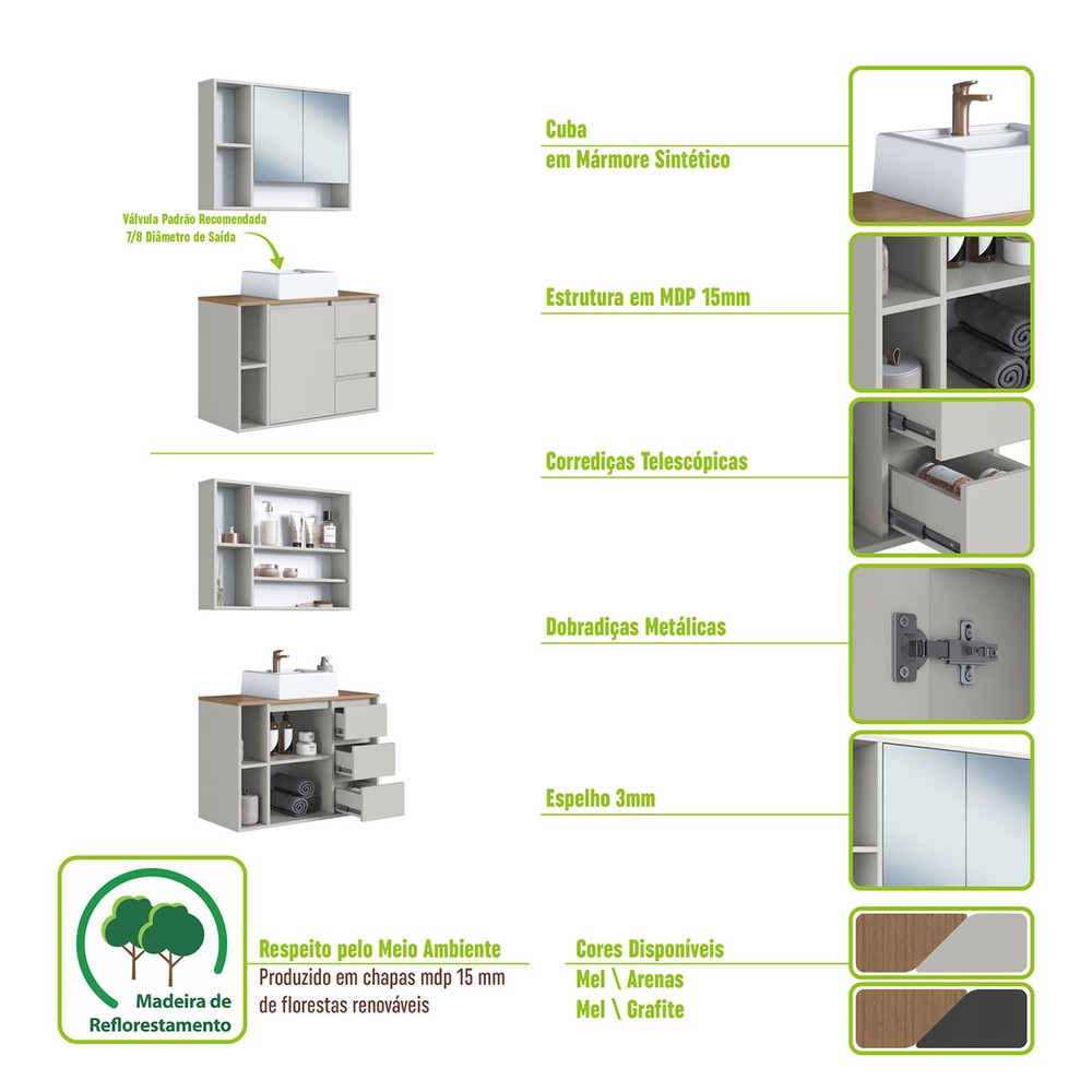 Armário de Banheiro Belagavi 3 Portas 3 Gavetas com Cuba e Espelho Arenas - Art In Móveis