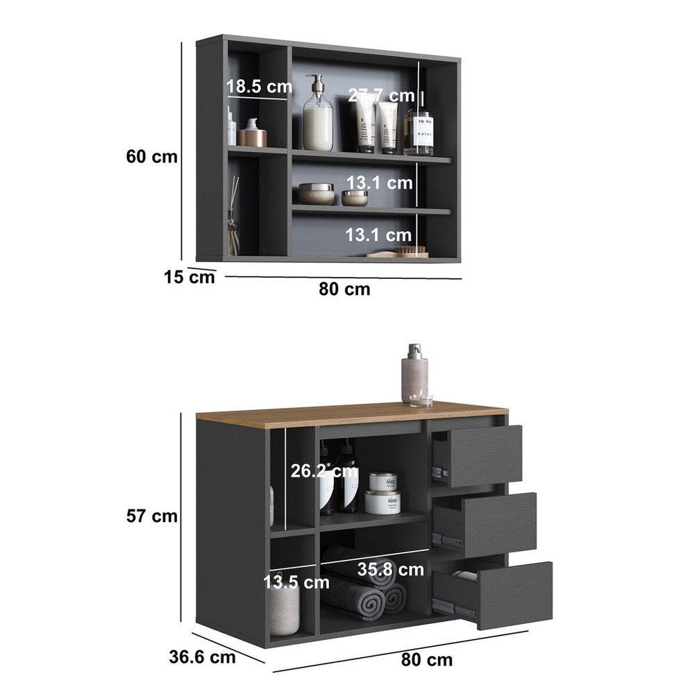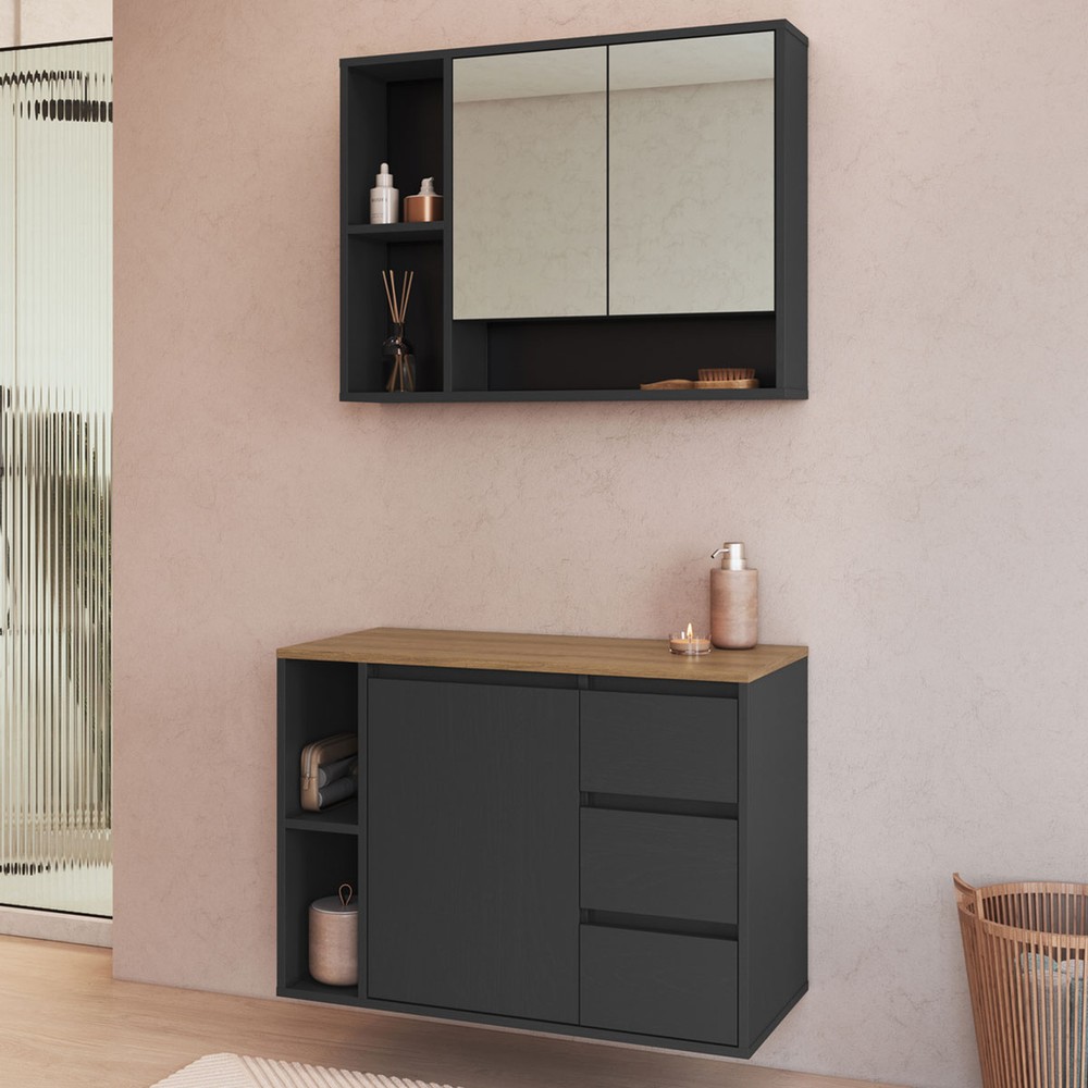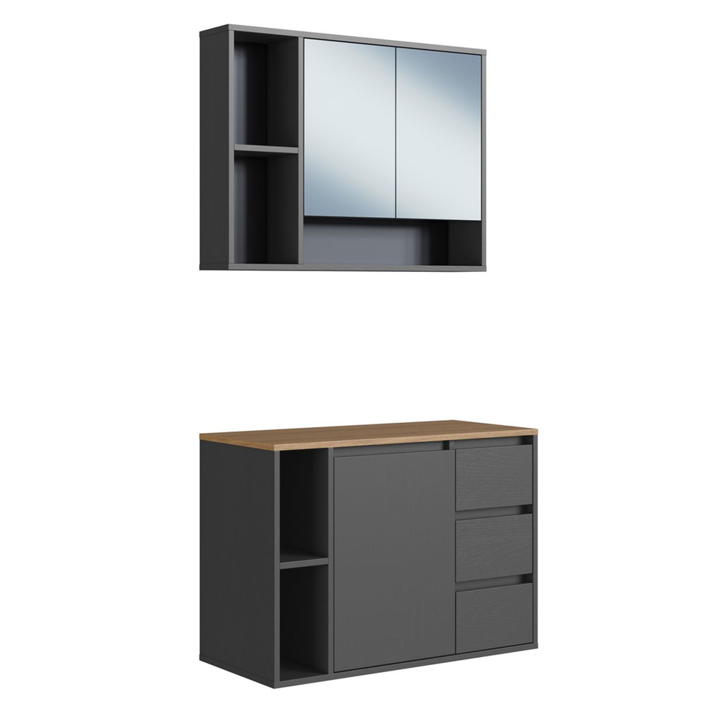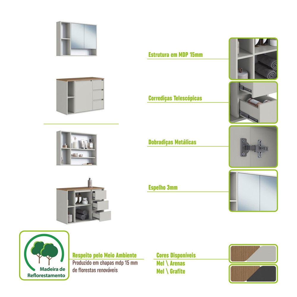 Armário de Banheiro Belagavi 3 Portas 3 Gavetas com Espelho Grafite - Art In Móveis