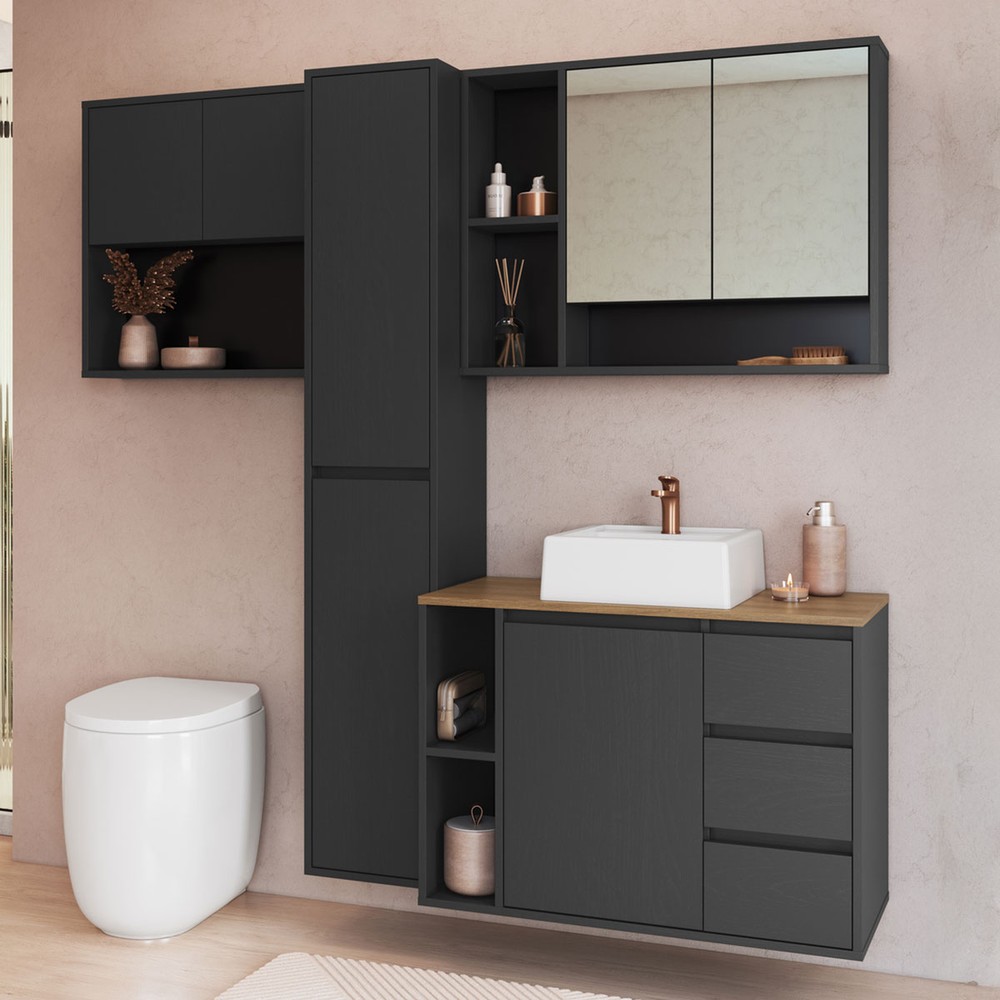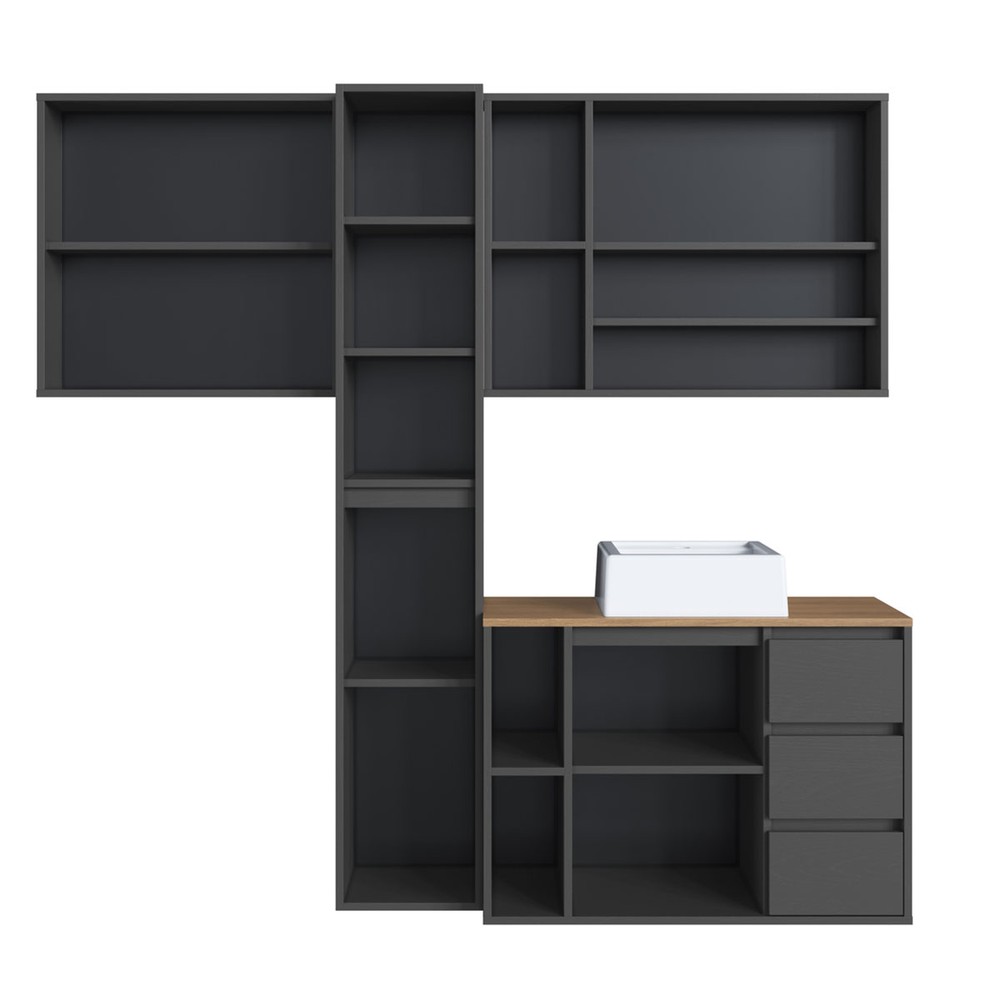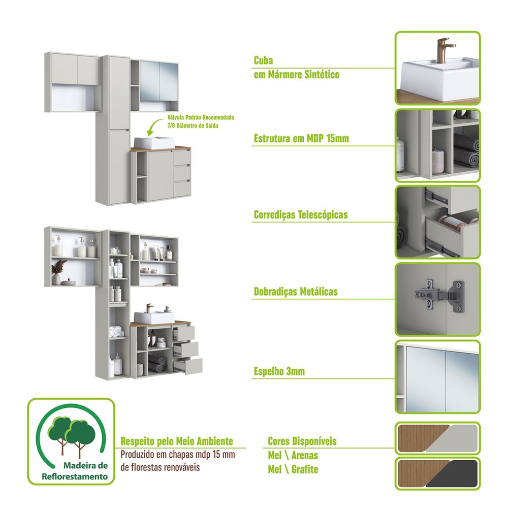 Armário de Banheiro Belagavi 7 Portas 3 Gavetas com Cuba e Espelho Arenas - Art In Móveis