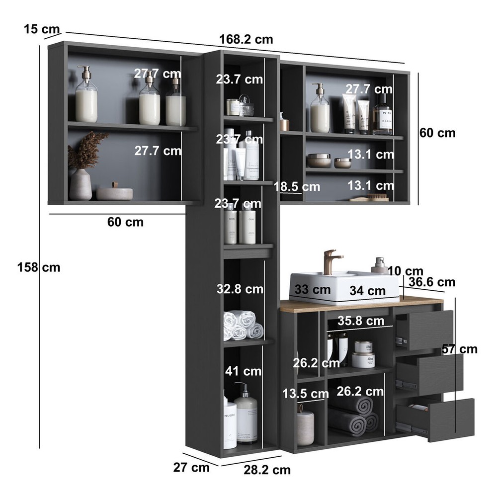 O(a) Armário de Banheiro Belagavi 7 Portas 3 Gavetas com Cuba e Espelho Arenas - Art In Móveis é produzido em MDP na escala de brilho Fosco, e possui um grau de dificuldade de montagem: Médio.