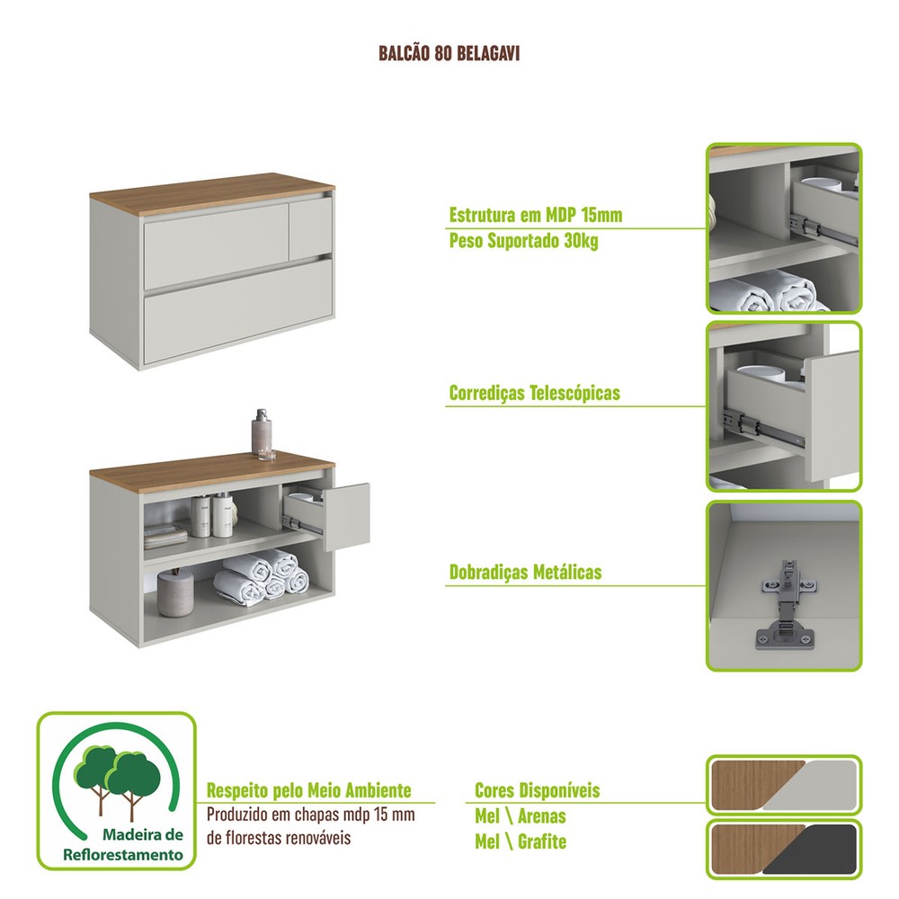 O(a) Armário de Banheiro Belarus 2 Portas 1 Gaveta Arenas - Art In Móveis é produzido em MDP na escala de brilho Fosco, e possui um grau de dificuldade de montagem: Médio.