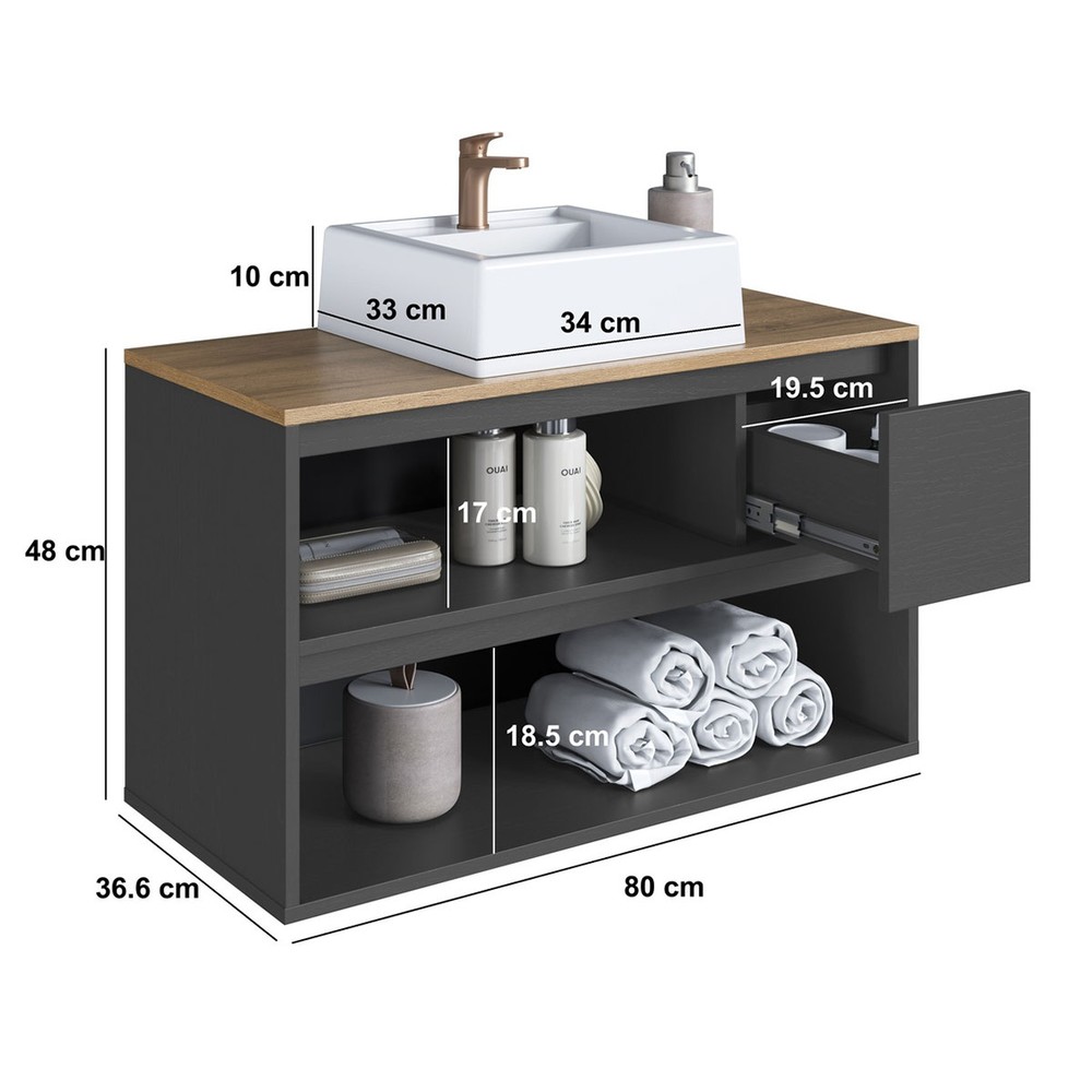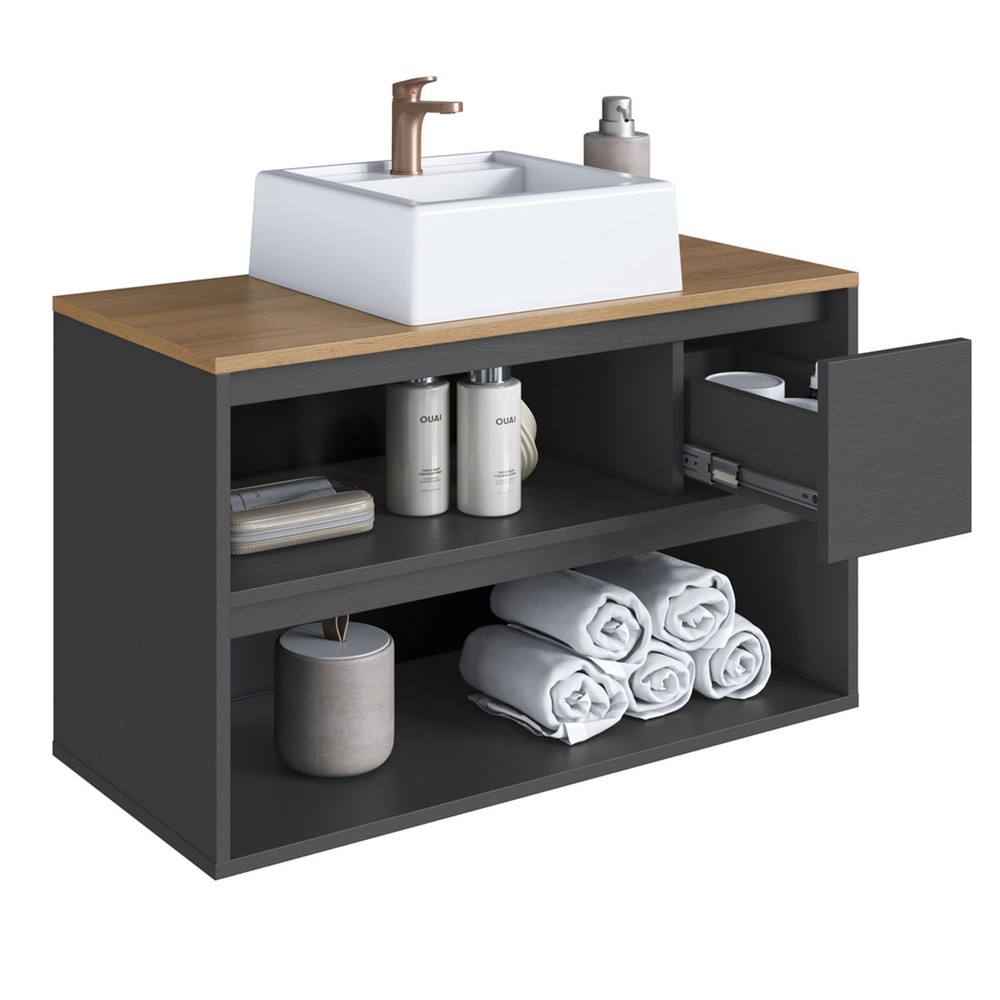 Armário de Banheiro Belarus 2 Portas 1 Gaveta com Cuba Grafite - Art In Móveis