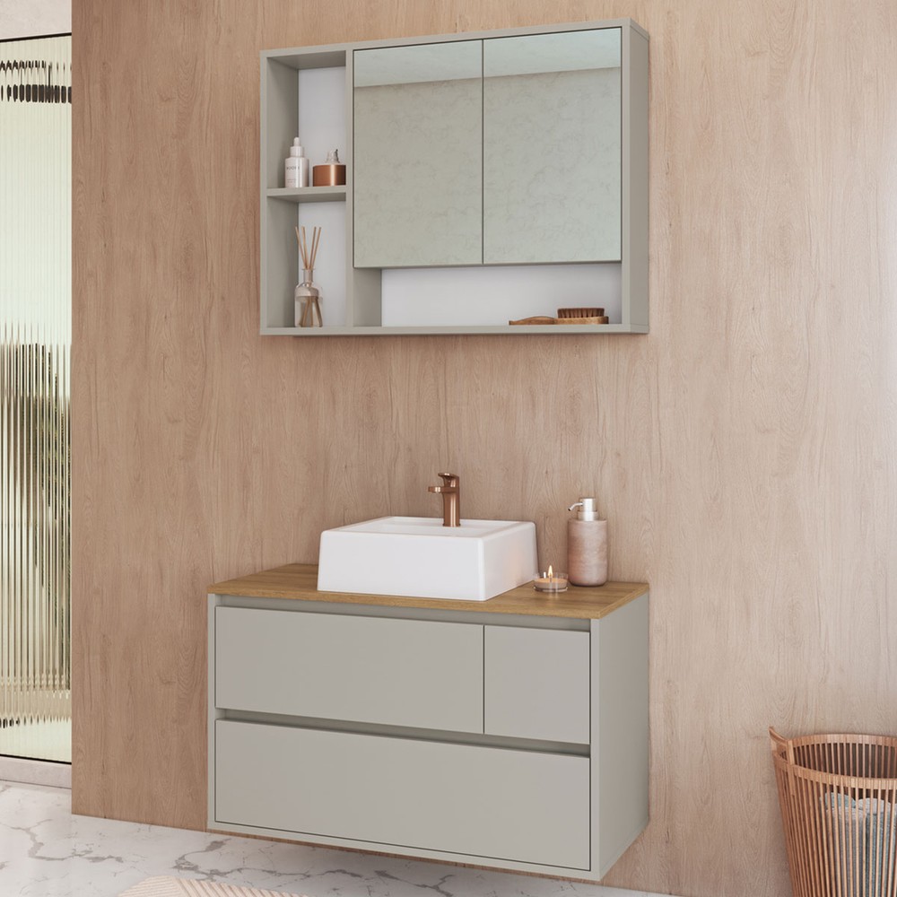 Armário de Banheiro Belarus 4 Portas 1 Gaveta com Cuba e Espelho Arenas - Art In Móveis
