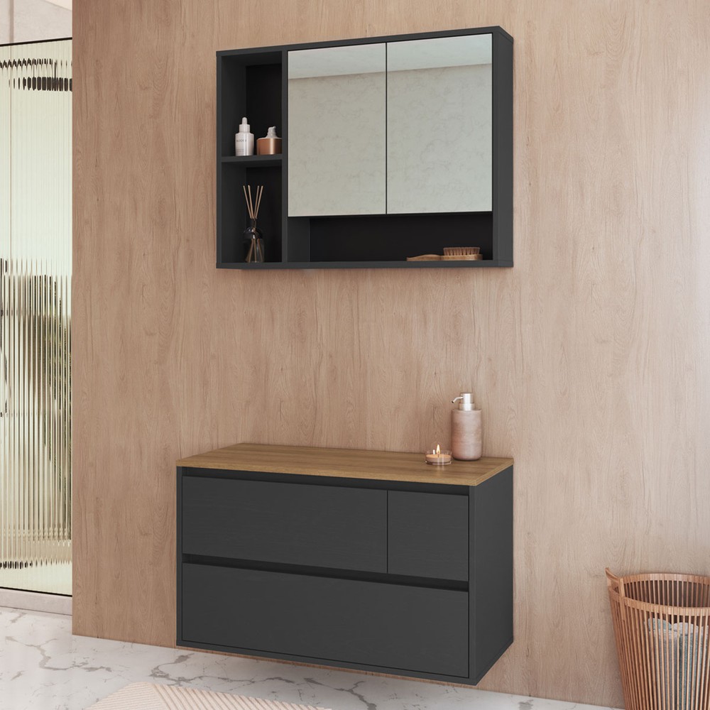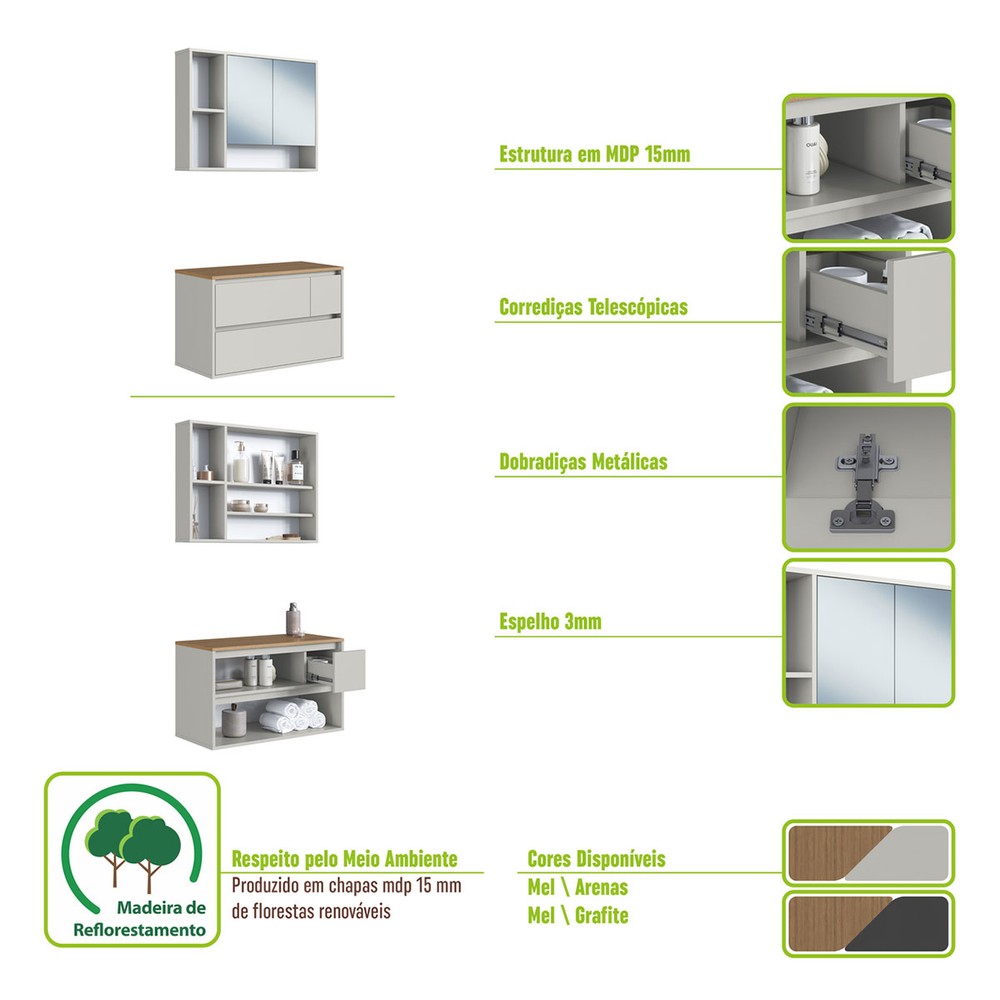 Armário de Banheiro Belarus 4 Portas 1 Gaveta com Espelho Grafite - Art In Móveis