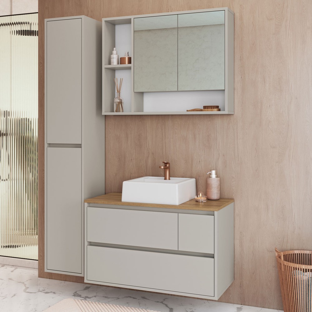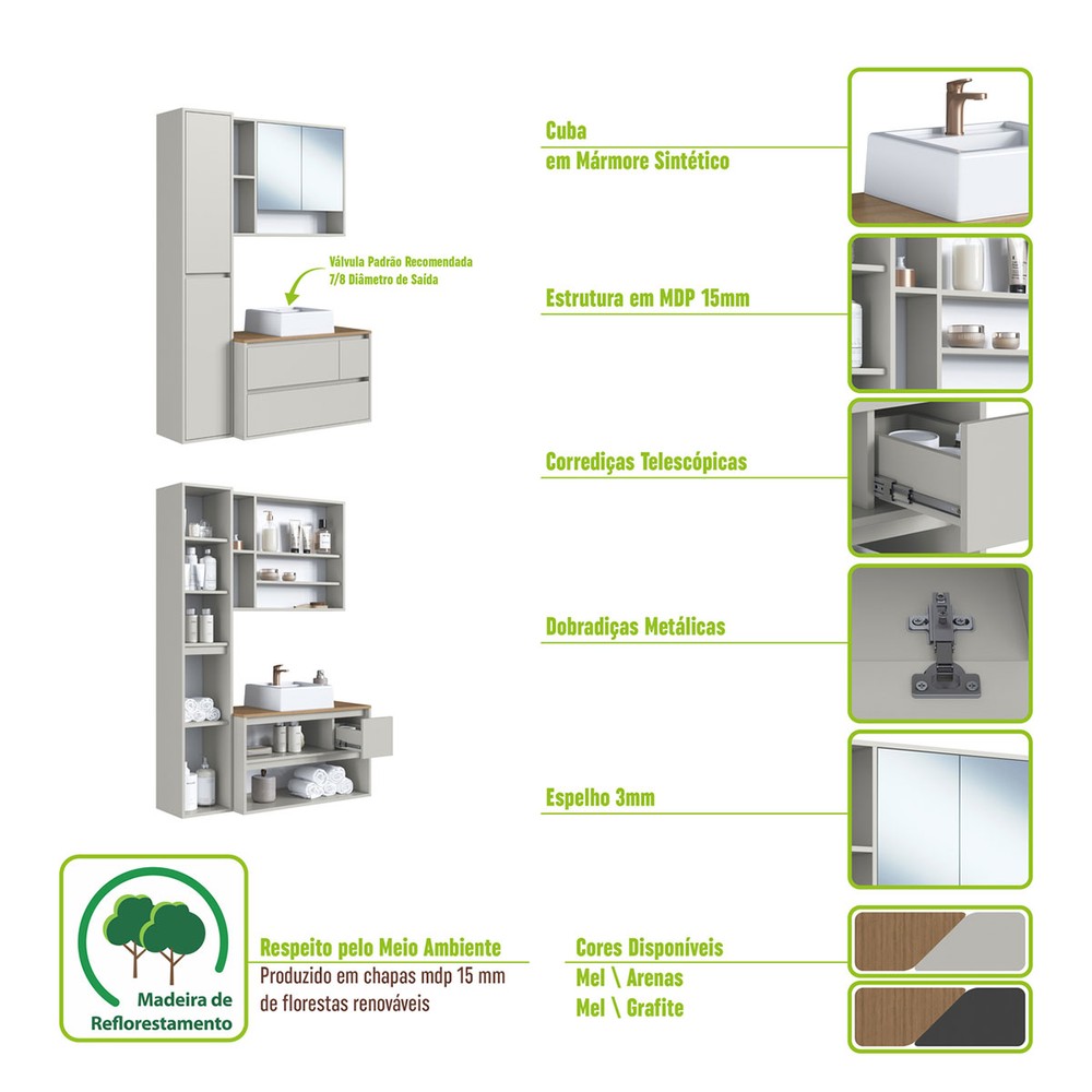 Armário de Banheiro Belarus 6 Portas 1 Gaveta com Cuba e Espelho Arenas - Art In Móveis