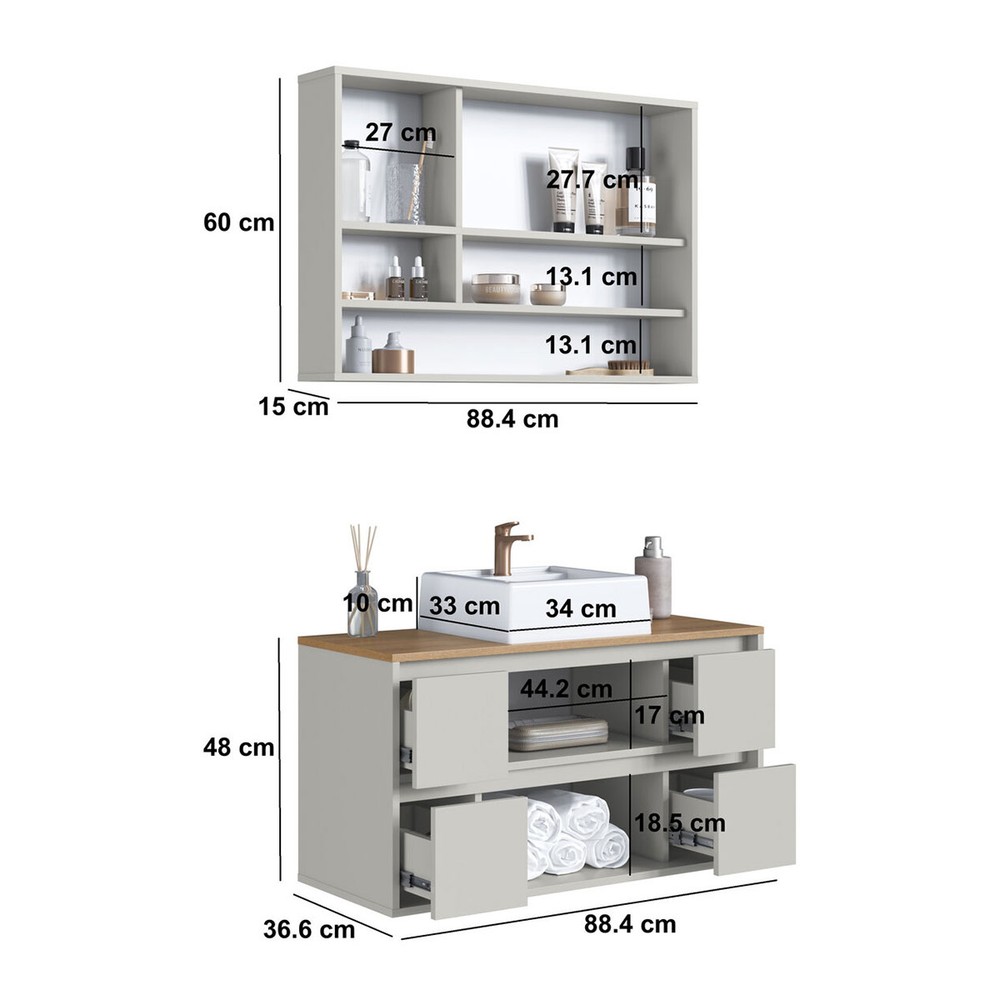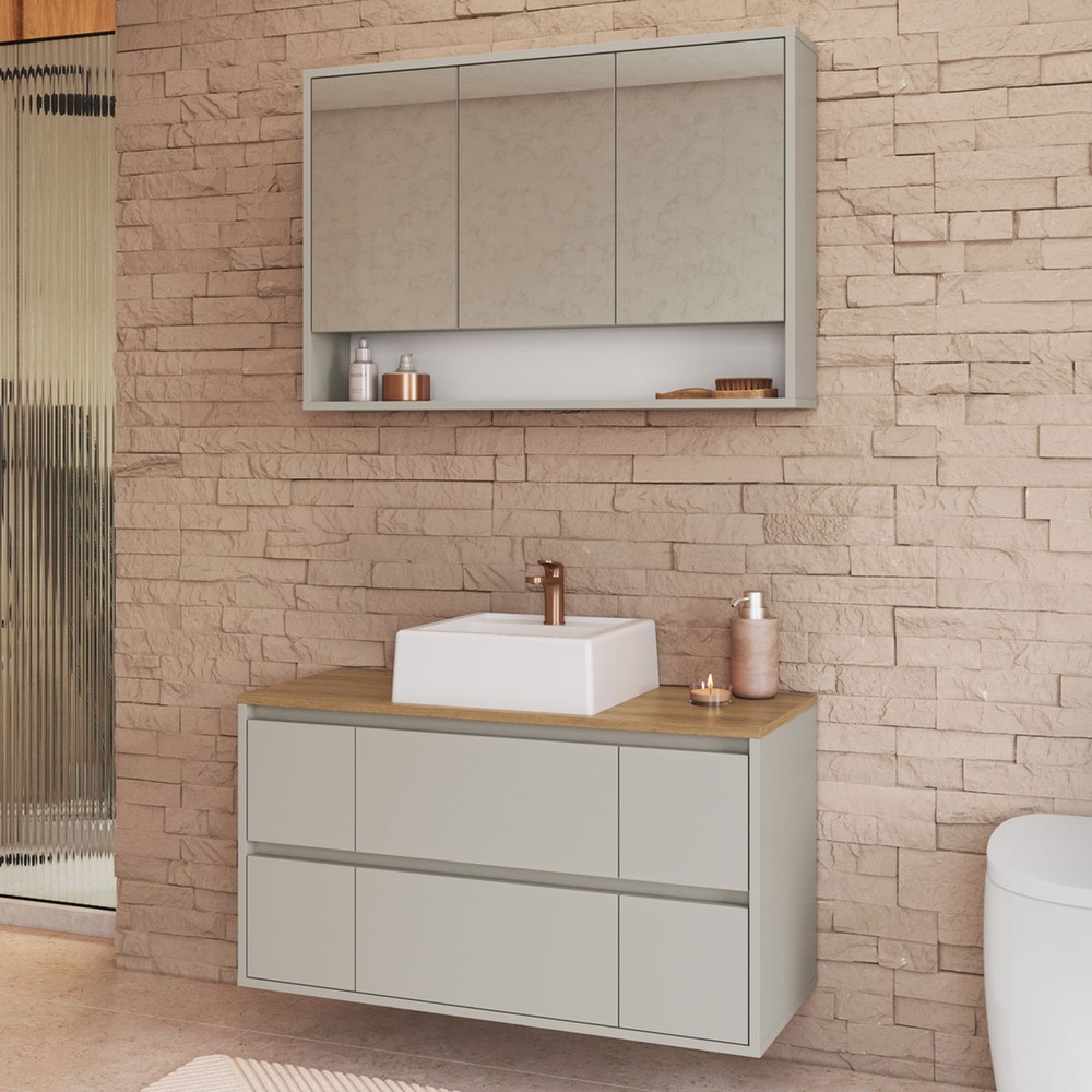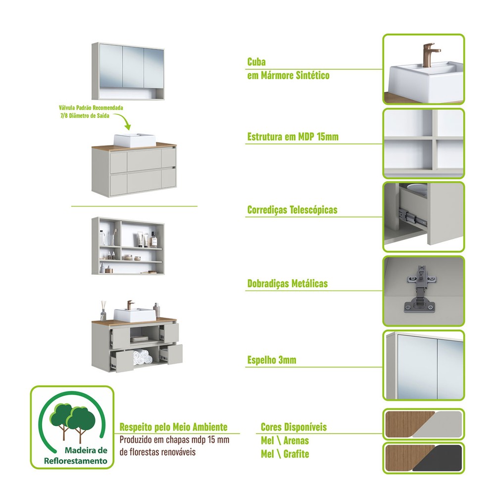 Armário de Banheiro Berlim 5 Portas 4 Gavetas com Cuba e Espelho Arenas - Art In Móveis